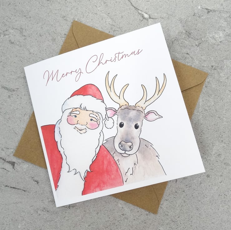 My Santa and Dasher Christmas card has been printed using my own original artwork on to new white textured 280gsm card which has been FSC approved.