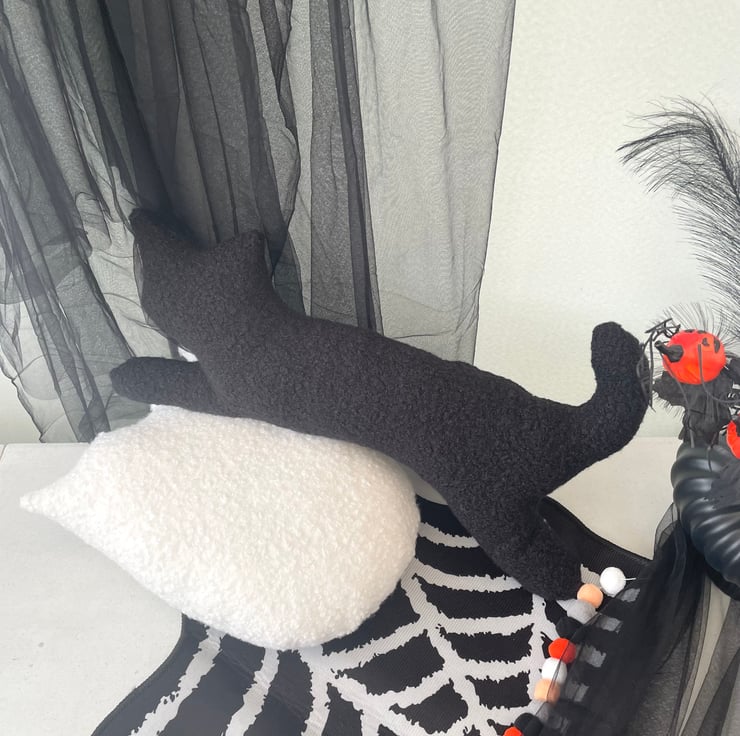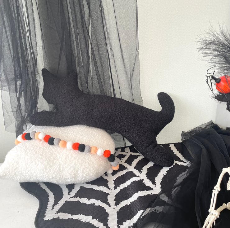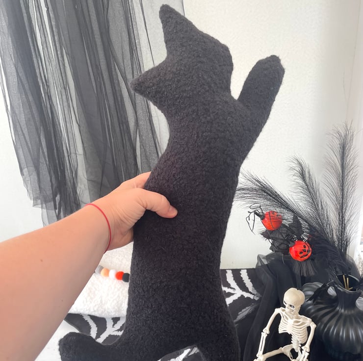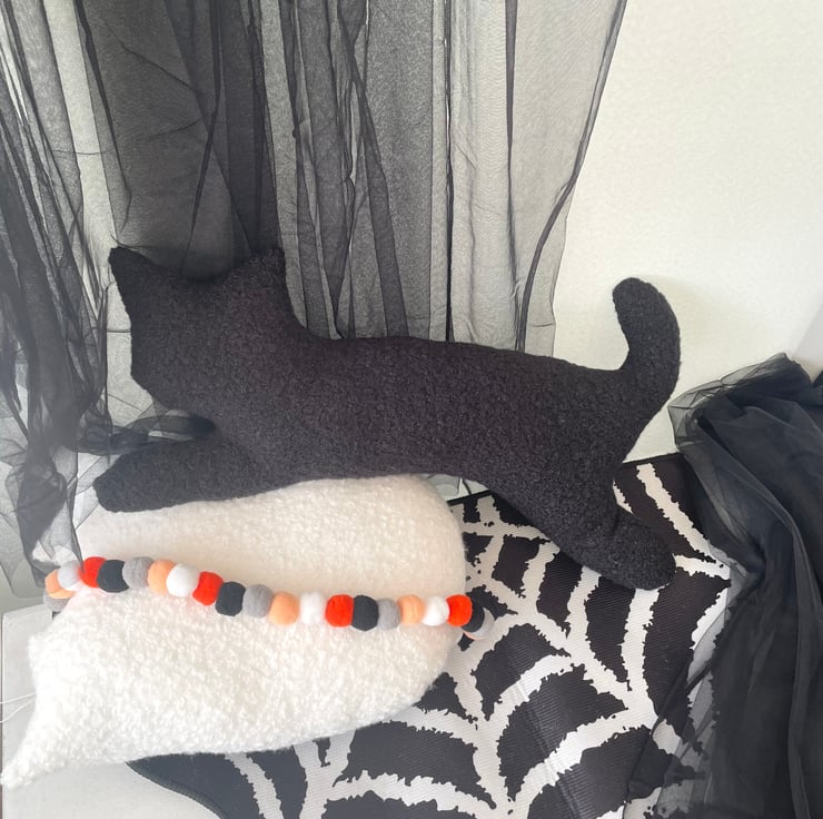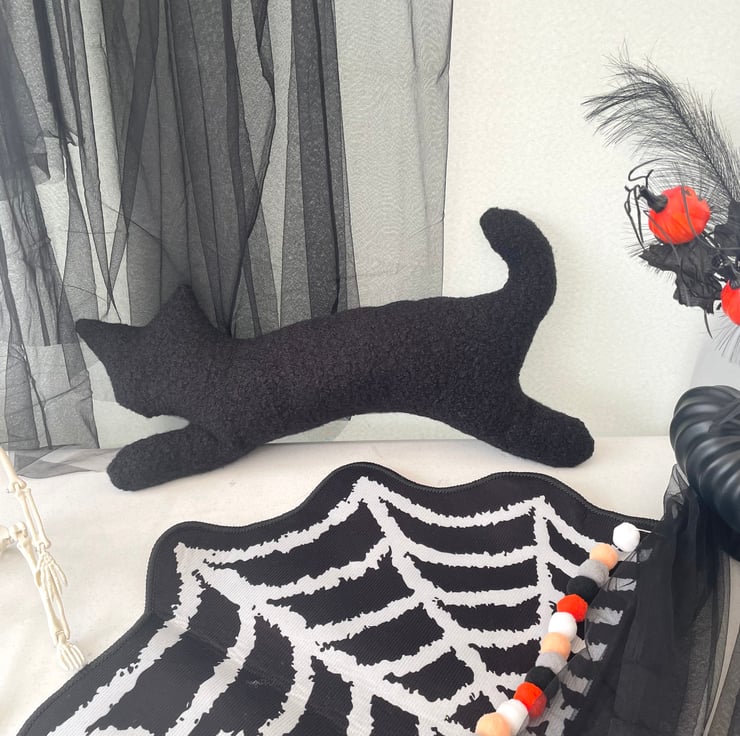 Whether you're decorating for spooky season or just adore black cats year-round, this soft and stylish cushion adds a unique, handmade touch to your fall setup. Also makes a thoughtful gift for Halloween lovers or cat enthusiasts!