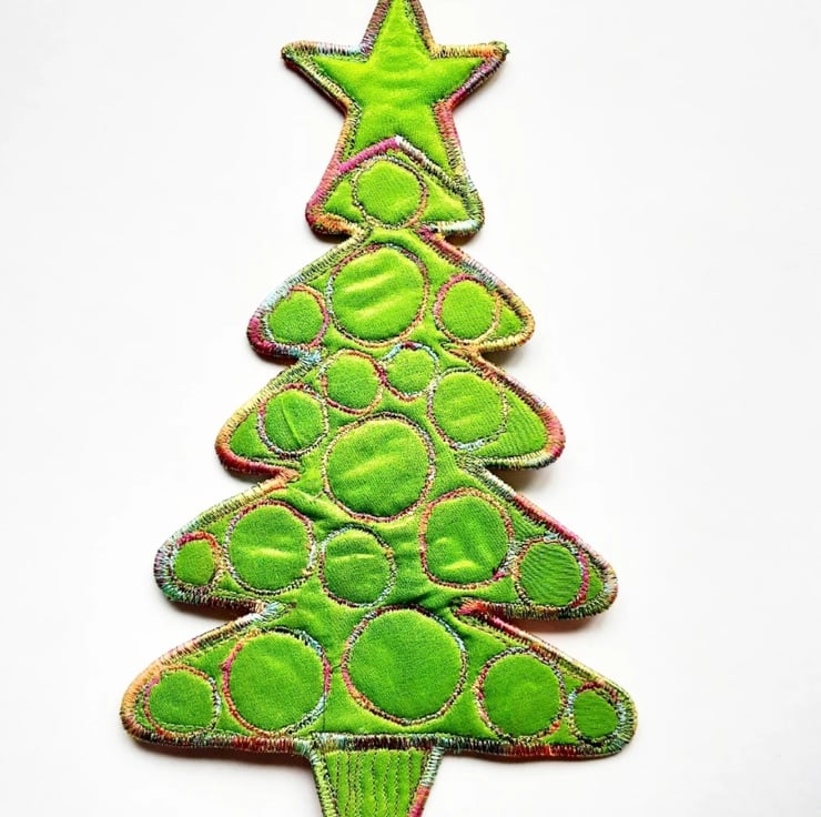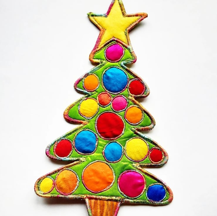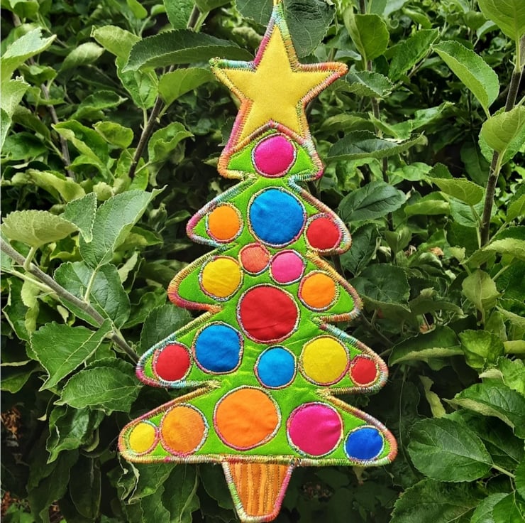 This is a handmade textile Christmas tree hanging decoration