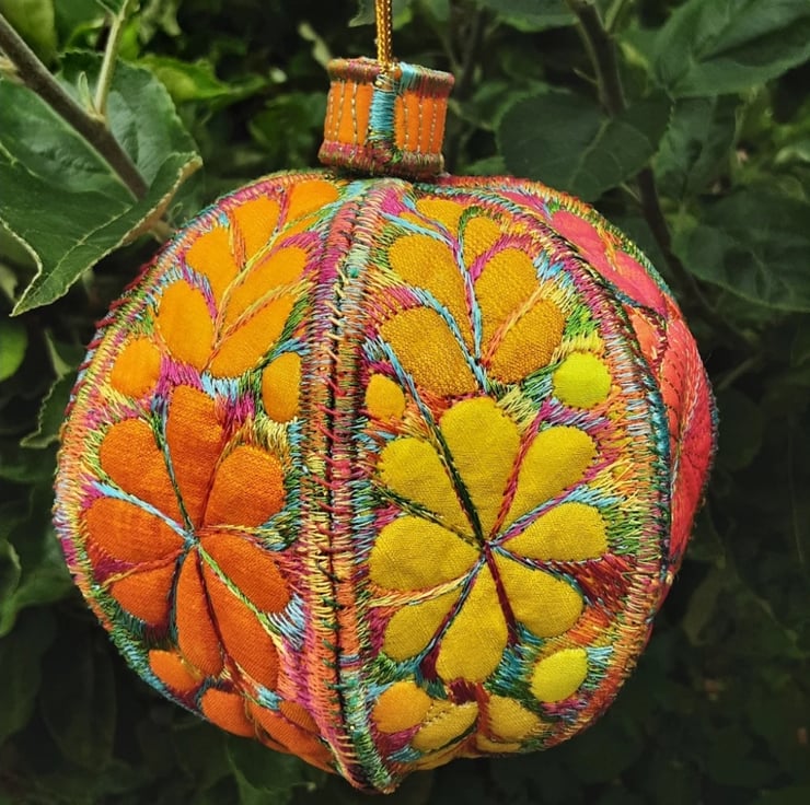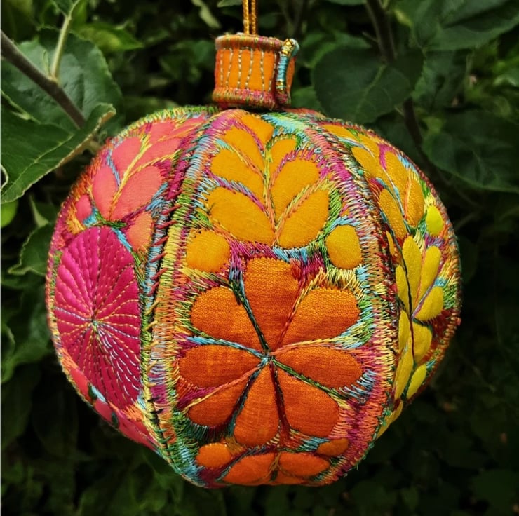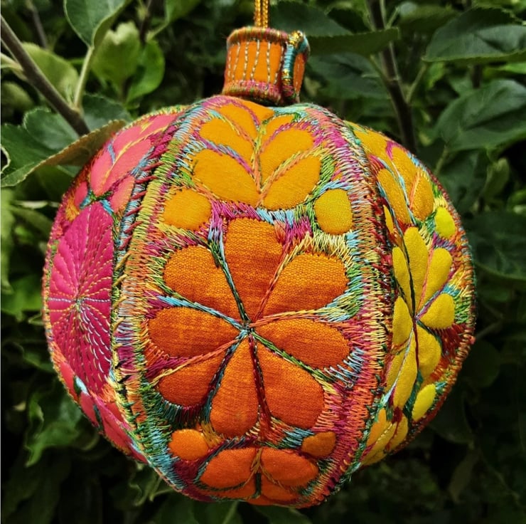 This is a handmade machine stitched textile Christmas bauble decoration