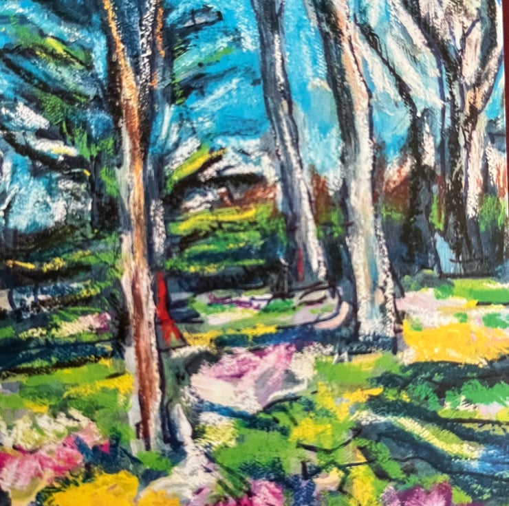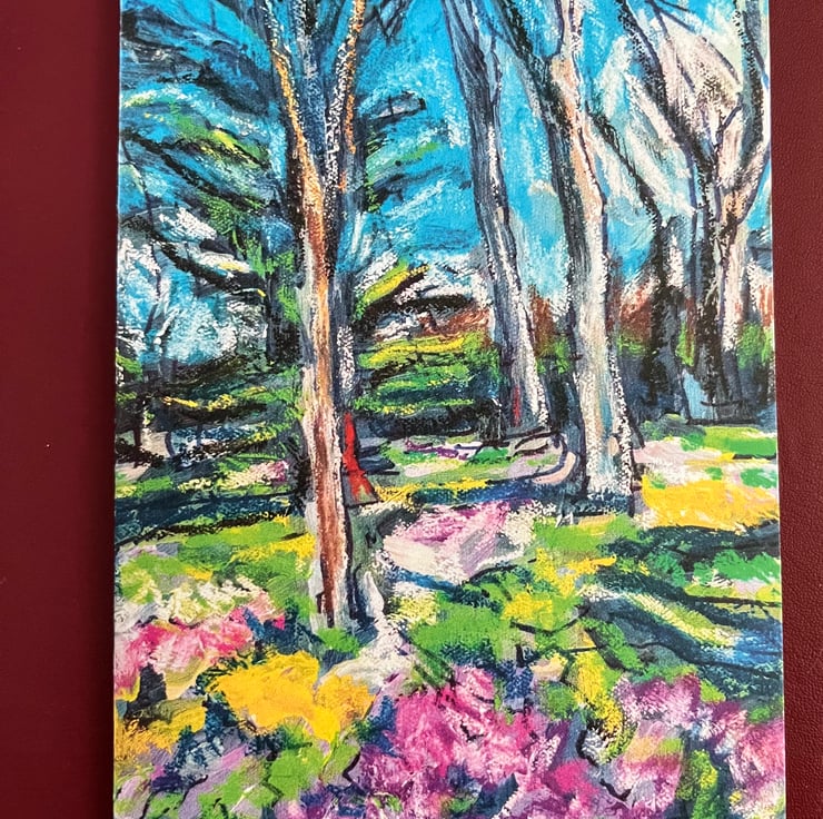 Blank card of a sketch of The copse in Spring Malling Abbey
