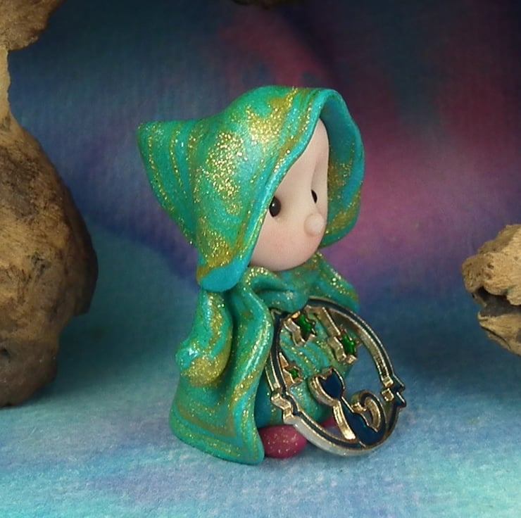 This is a 'one of a kind' creation having been entirely handmade without the use of moulds here at my studio on the Sussex Coast. Modelled with artist blend polymers, blushed before sealing with lacquer, Folly has sparkling black onyx eyes and glittering robes. Folly the Magical Gnome is just one and a half inches tall.