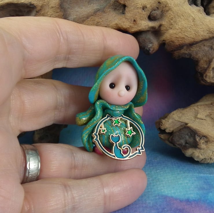 Folly is a tiny Magical Gnome with sparkling star and cat embellishment ...