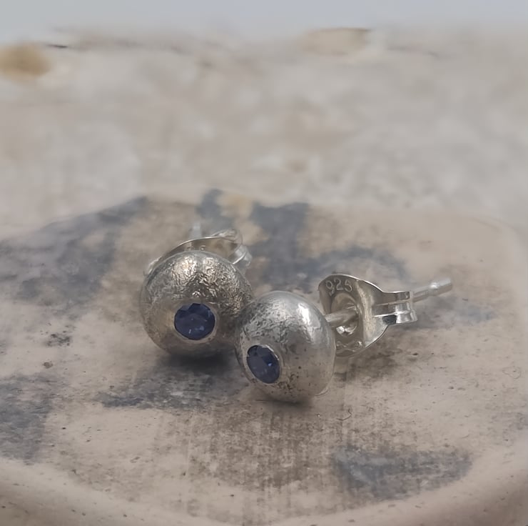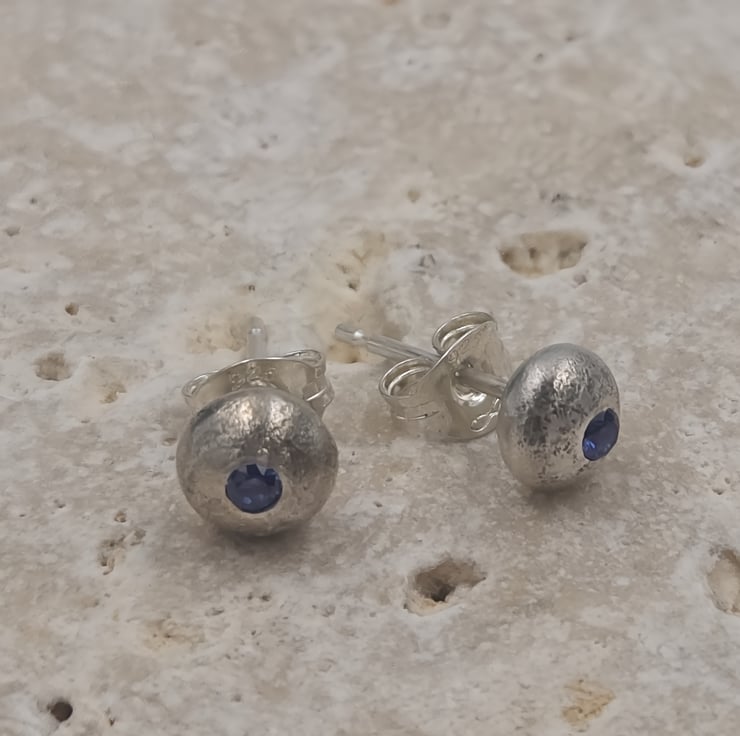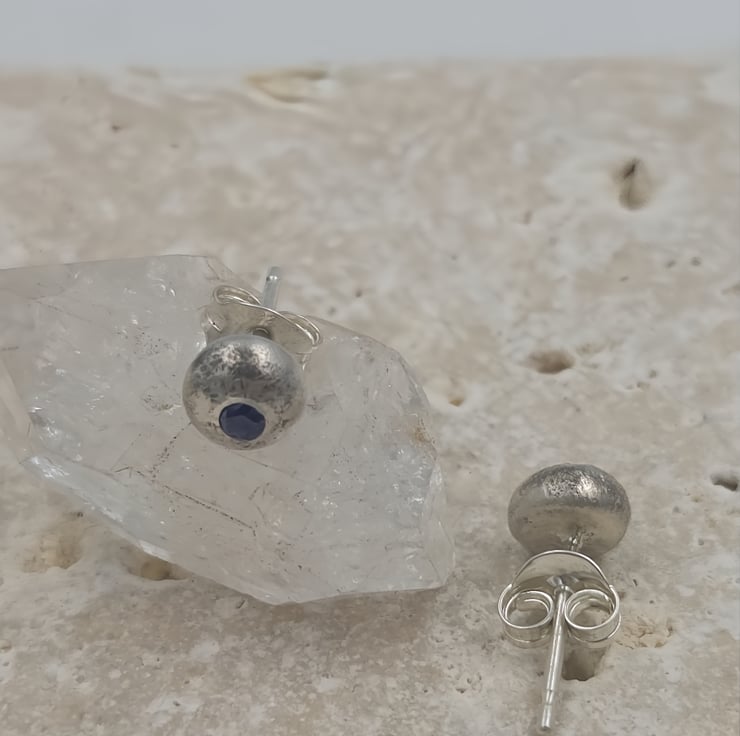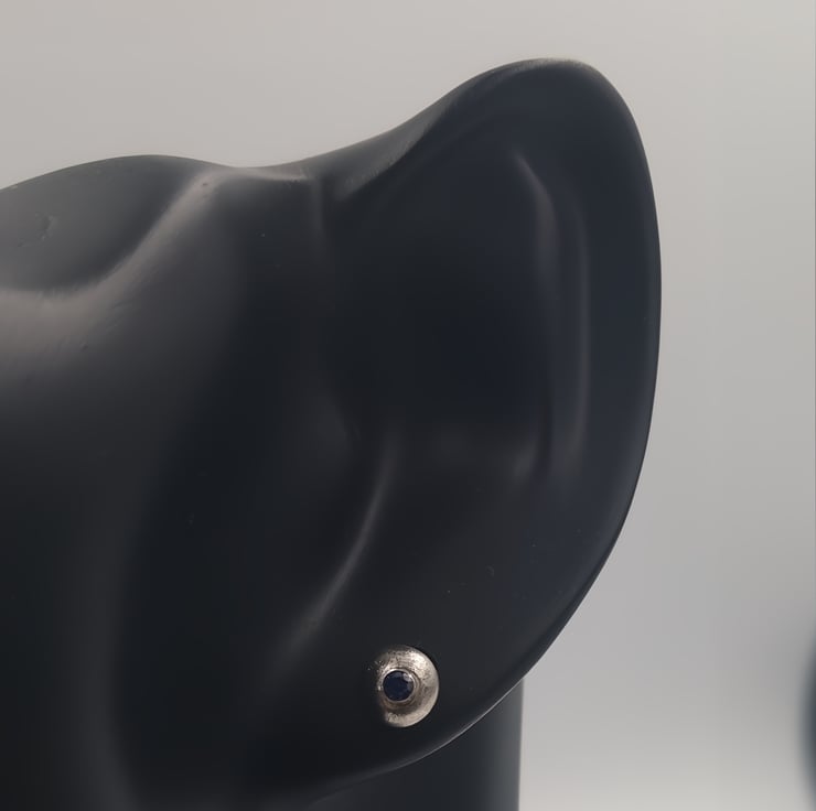 The contrast between the raw texture of the silver and the precision-cut gemstone gives these earrings a unique, modern edge. Perfect for daily wear, second piercings, or as a thoughtful gift, these studs bring elegance with a touch of natural imperfection.