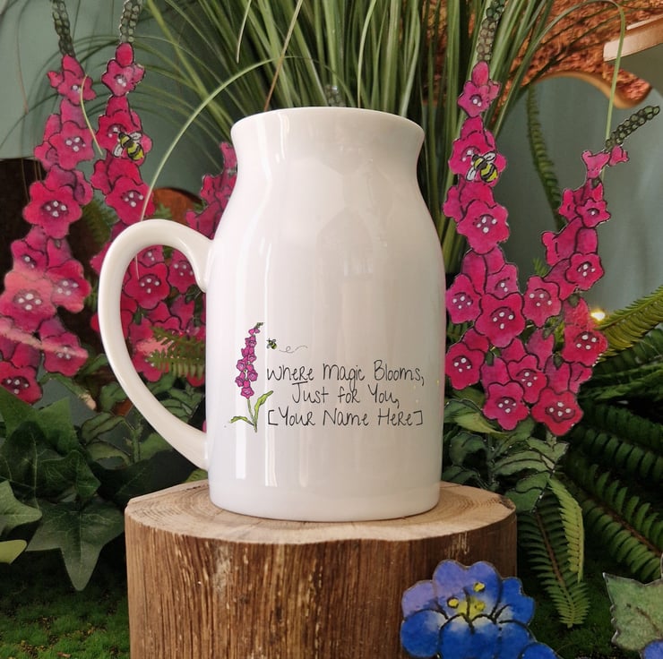 On the reverse is the sentiment: “Where Magic Blooms, Just for You,” with the option to personalise it with a name. Each jug also comes with a printed copy of Finn’s Gift of Gloves poem, ready to read, gift, or tuck into a favourite nook.