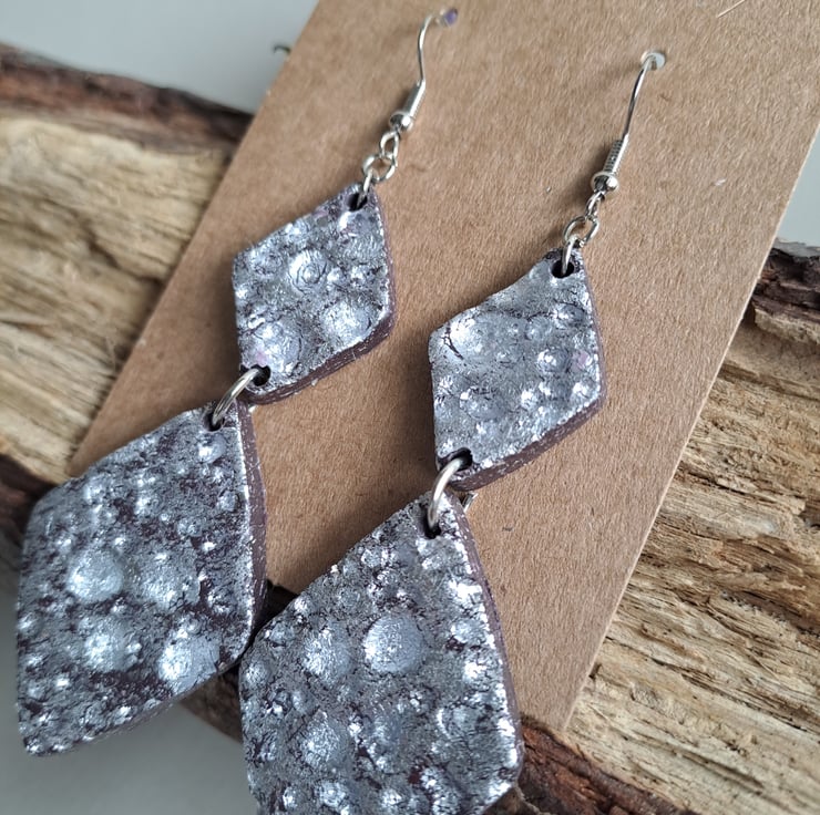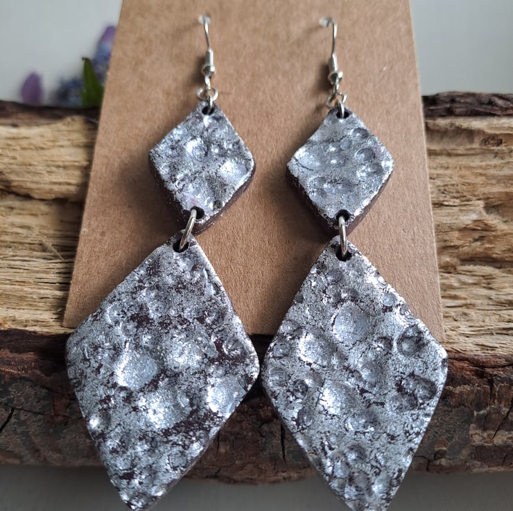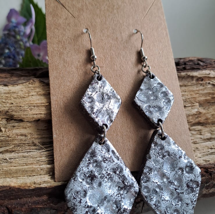 Bold hammered silver /moon crater style earrings with diamond dangle drops. Dress up or dress down and these funky earrings will be suitable for many occasions.