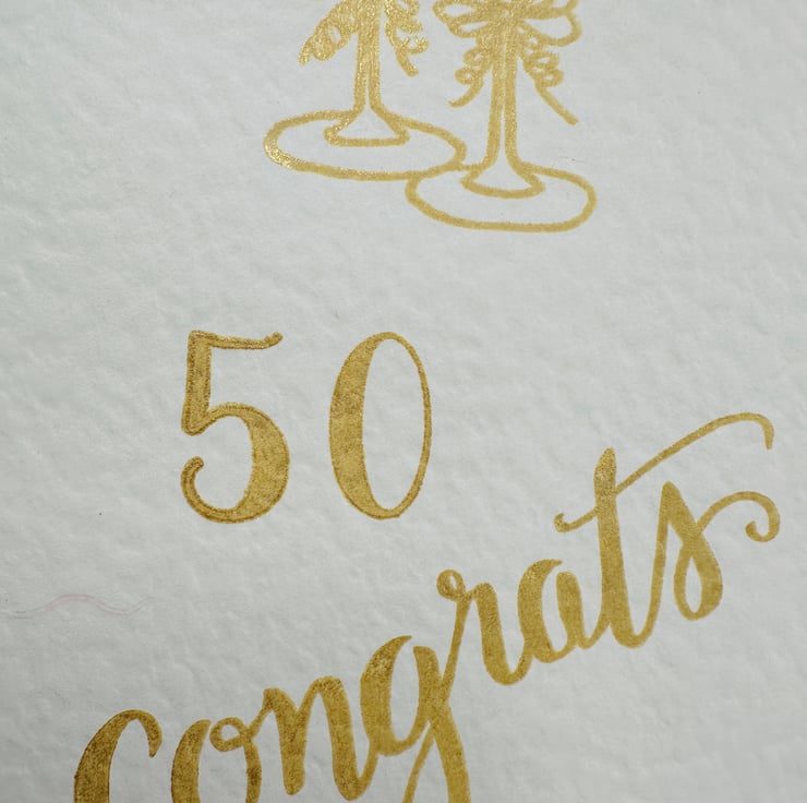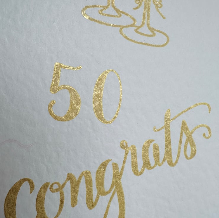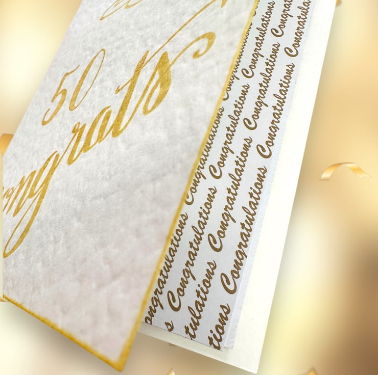 The delicate simplicity of this special card makes it perfect for a couples 50th wedding anniversary or equally beautiful for a 50th birthday celebration.