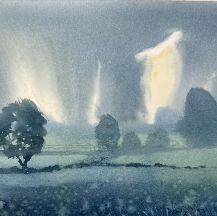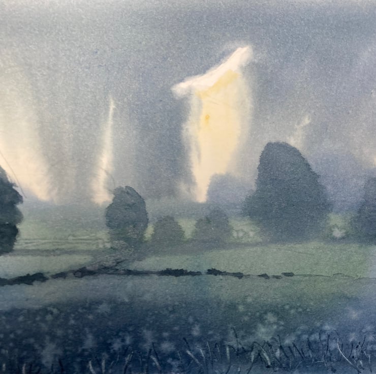 Massive cloud cover and extremely dark the storm had moved on into the distance - I painted this from my car.