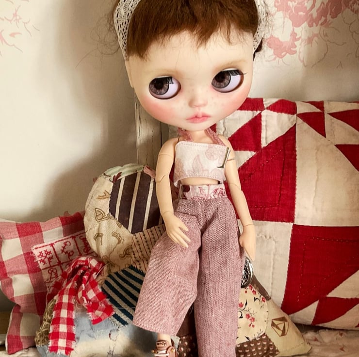 Please note - whilst the fabric used for the crop top is the same, the pattern positioning varies from one set to another, and will be selected randomly as shown in the last photo.