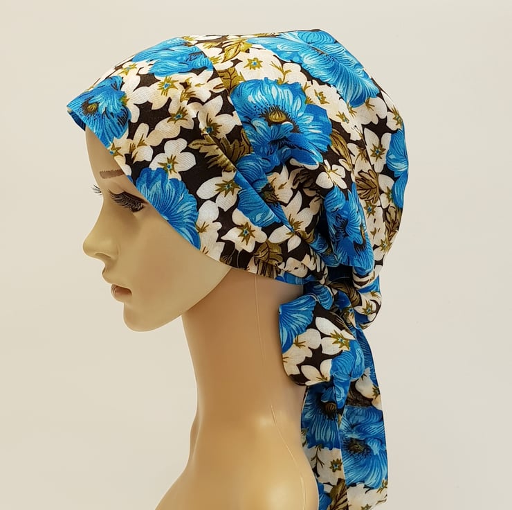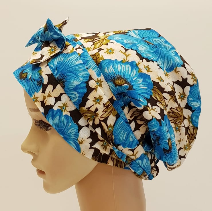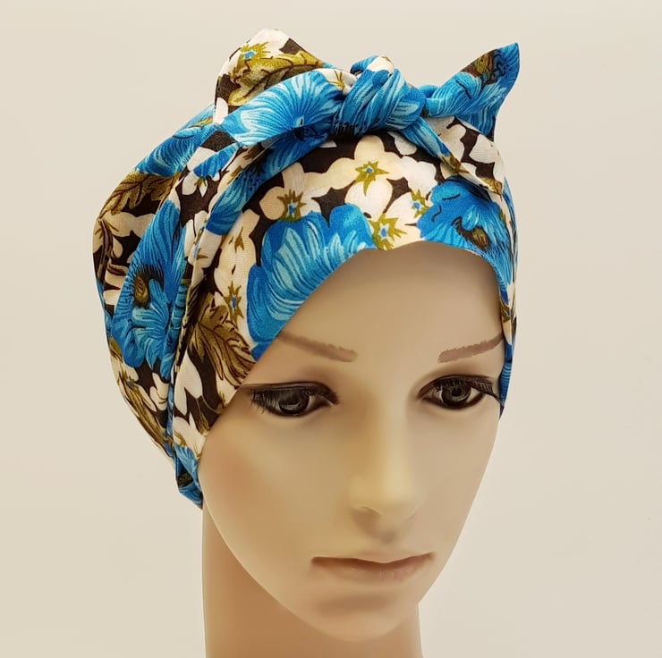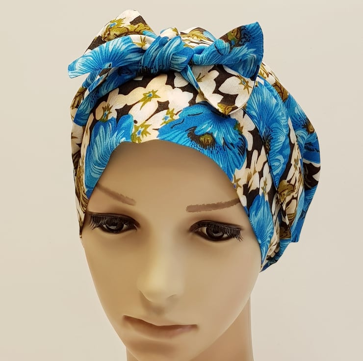 The headscarf looks amazing and helps in many ways. This self tie apron style Head scarf is perfect for looking great when you want to keep your head under wraps for whatever reason.The style is elegant and practical. Head covering made with two tails which can be tie different . The front edge is foldable, you can extent the bonnet if necessary.