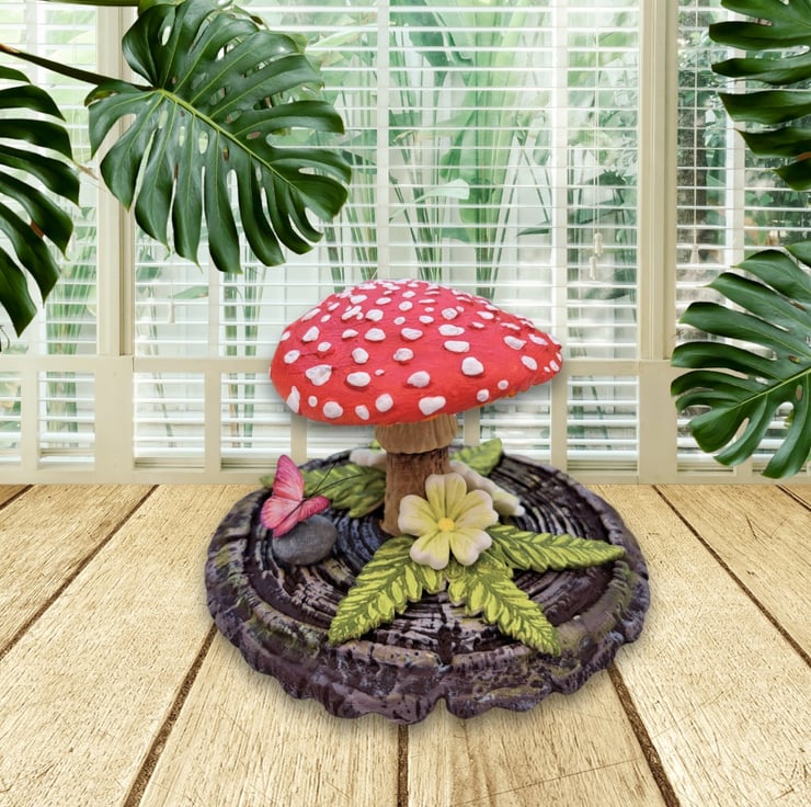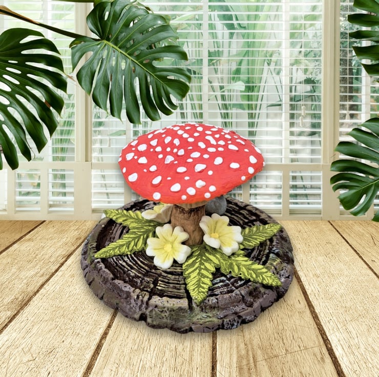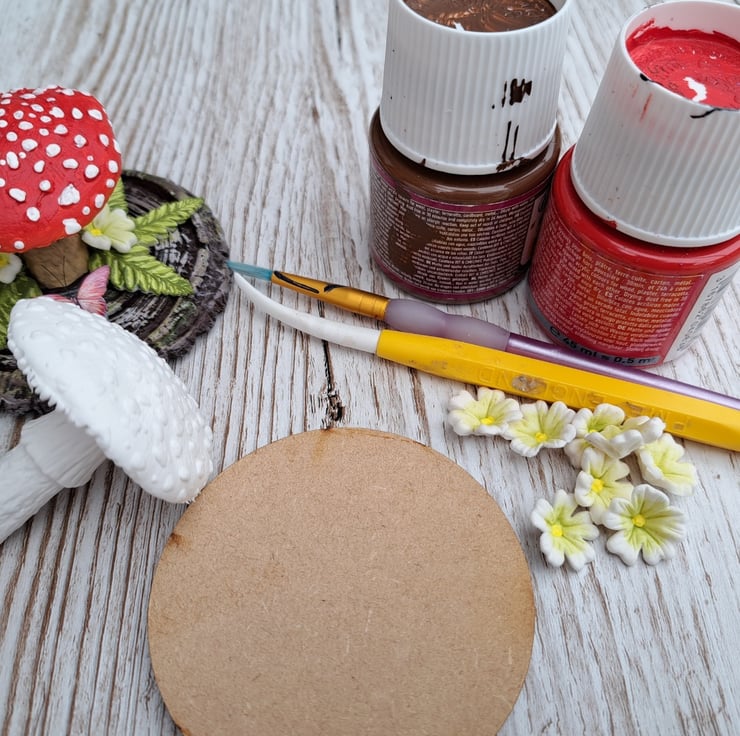Each toadstool is carefully made from air-drying clay and sits on an MDF base textured to look like mossy bark. It’s then hand-painted with acrylics in rich, earthy tones. Handmade to order so each one will vary slightly. (Please allow up to 2 weeks however it is usually much quicker)