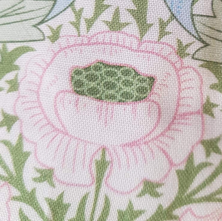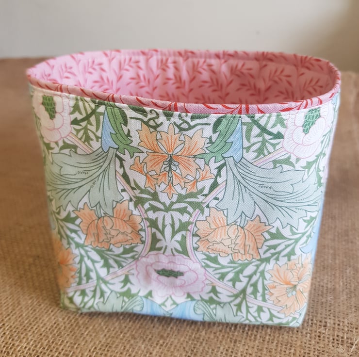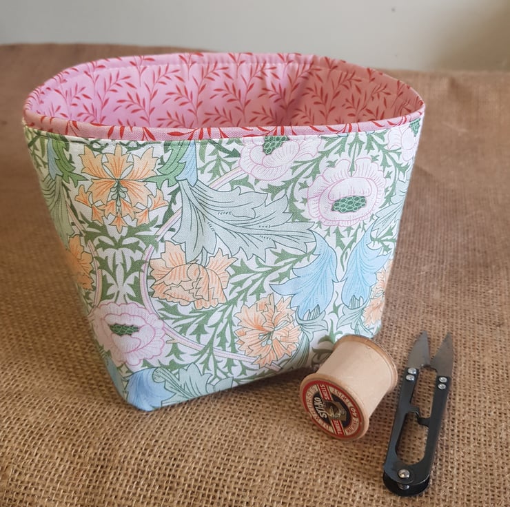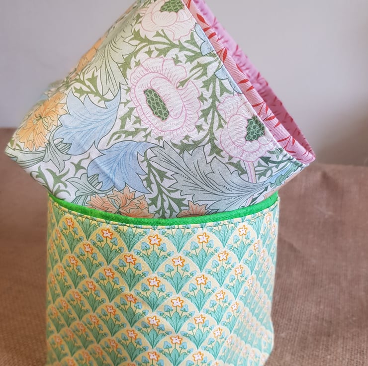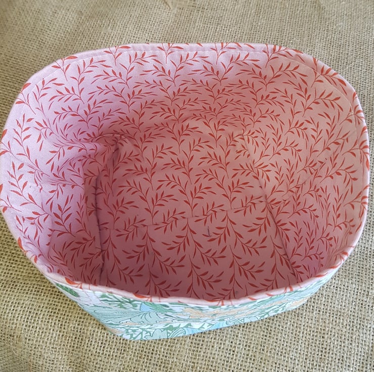 Both outer and lining fabrics are good quality cotton fabrics which have been interfaced so this keeps its shape. The lining fabric peeps over the top giving an interesting finish.