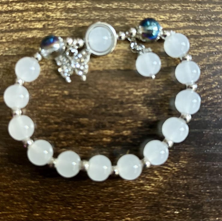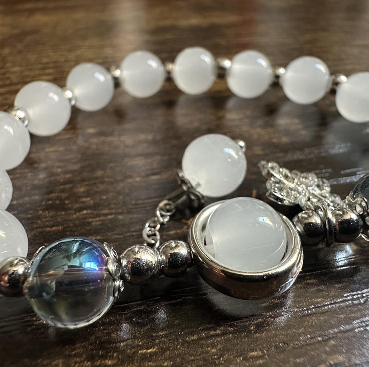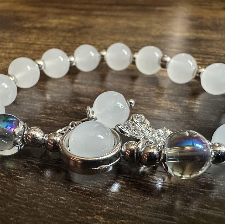 Lightweight and versatile, this bracelet balances the throat chakra, soothes an overactive mind and aids dream recall. Howlite’s calming energies make it ideal for meditation and stress relief, helping you drift into restful sleep.