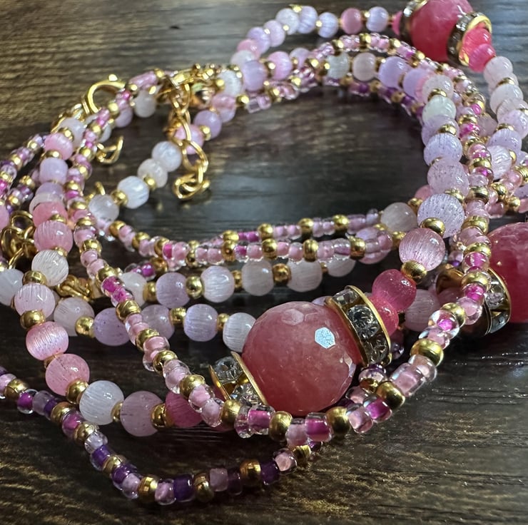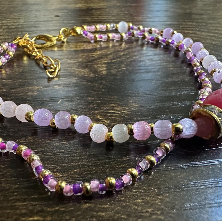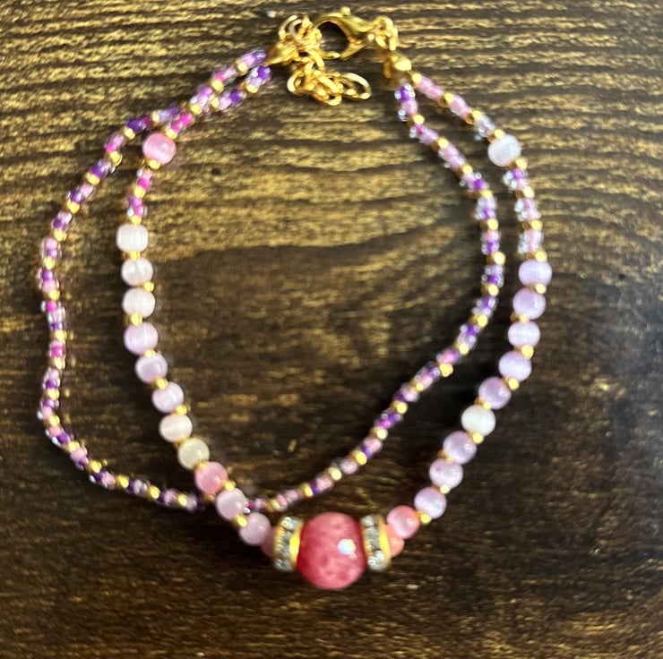 Handmade Bracelet Pink Glass Beads with Golden Chain High Quality
