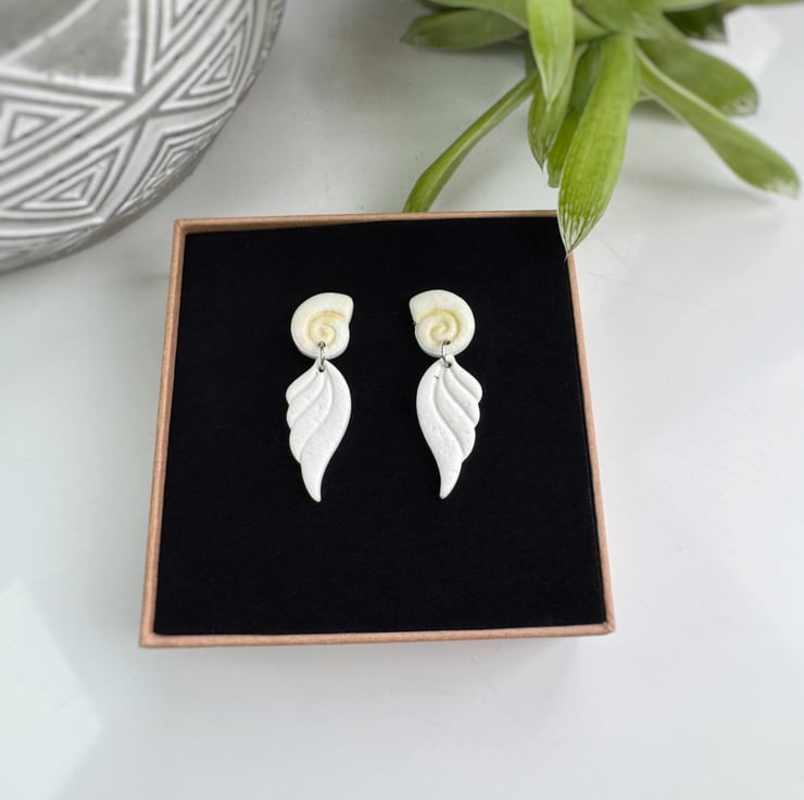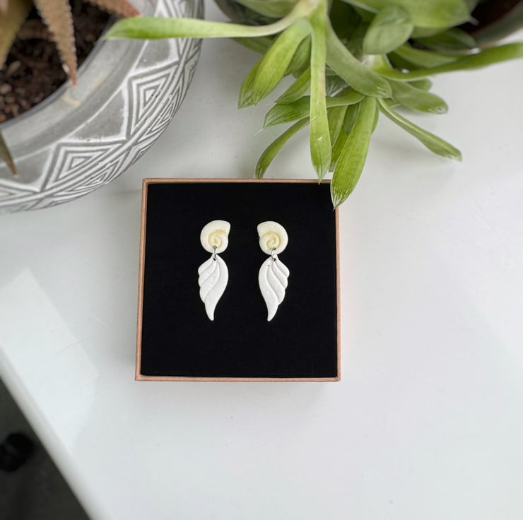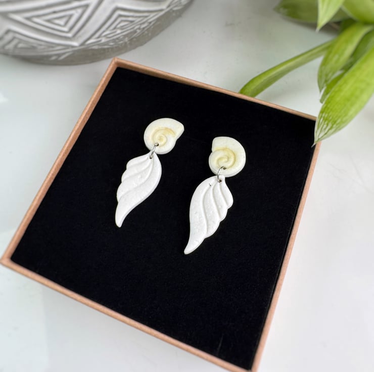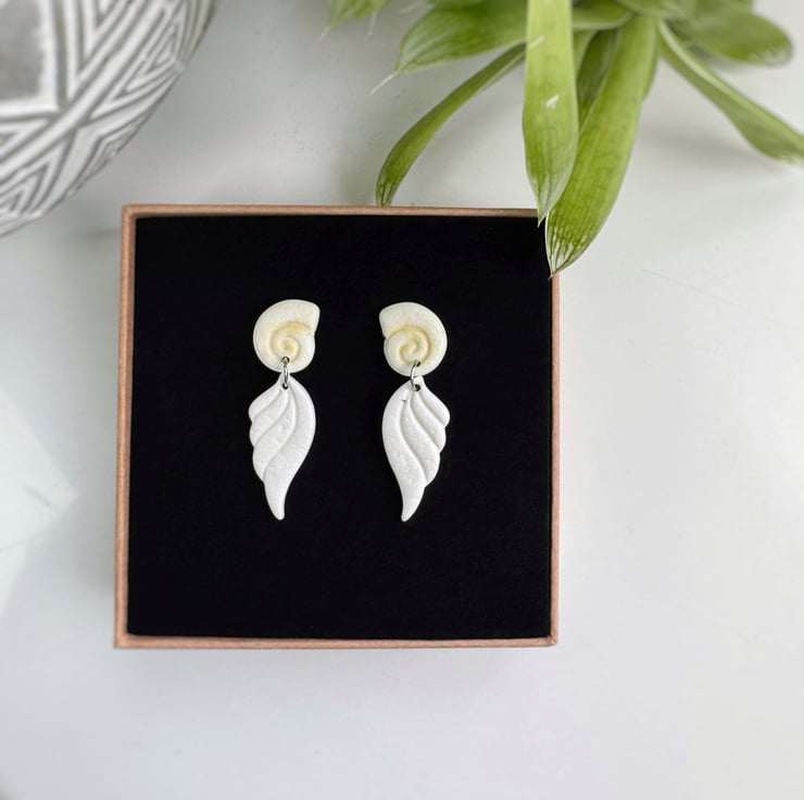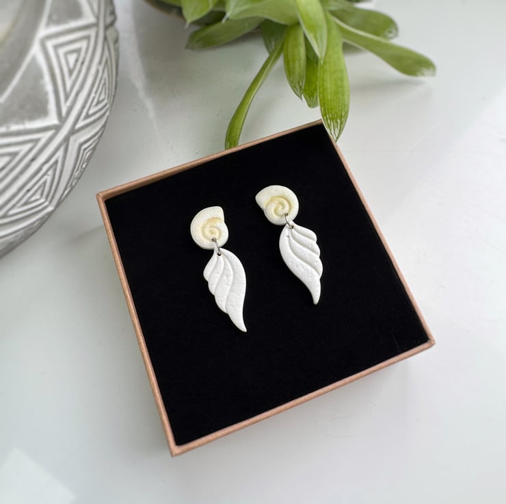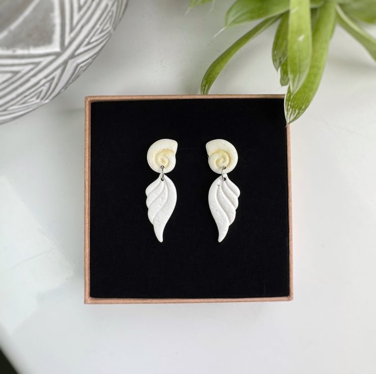 White Spiral Seashell with a delicate subtle Pastel yellow mica hue.