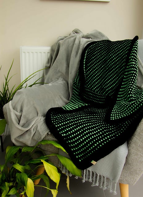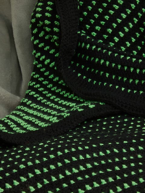 This blanket was made using the pattern Rainbow Through the Storm, designed by Melly Elly Crochets. I chose to use this pattern to make a statement of the lovely green yarn! The final blanket size (100x100cm) was decided when I ran out of green cotton yarn which I had purchased second hand. (Coincidentally, I actually managed to get this yarn part used from 2 different sellers which felt like finding a needle in a haystack) The black is made up of lots of different balls of black acrylic, some of which were leftovers from other projects and some of which were brought second hand.