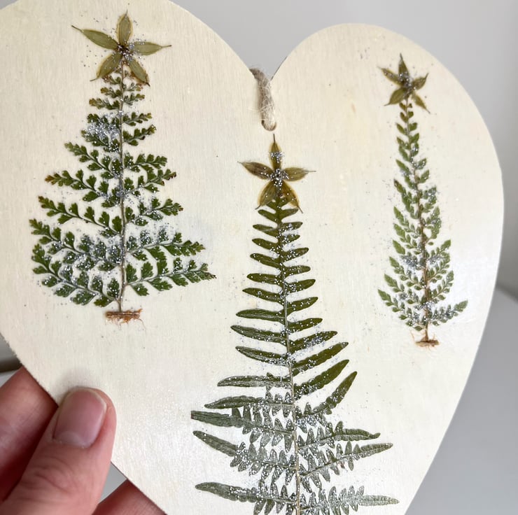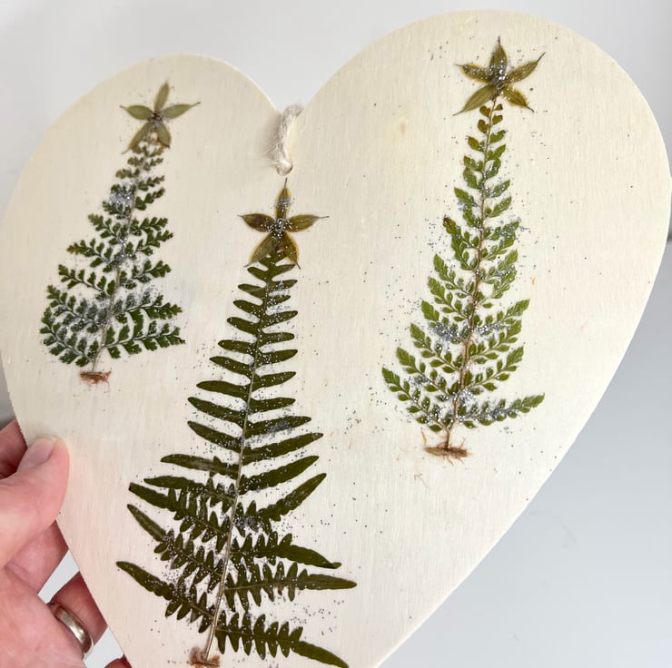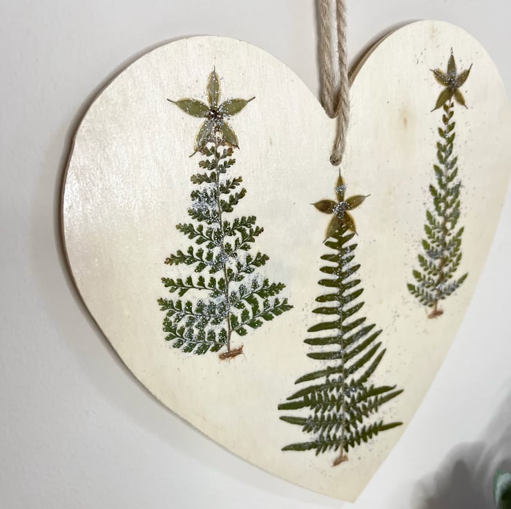 This unique pressed fern wooden heart is ideal to brighten up any home at Christmas time, bringing nature indoors.