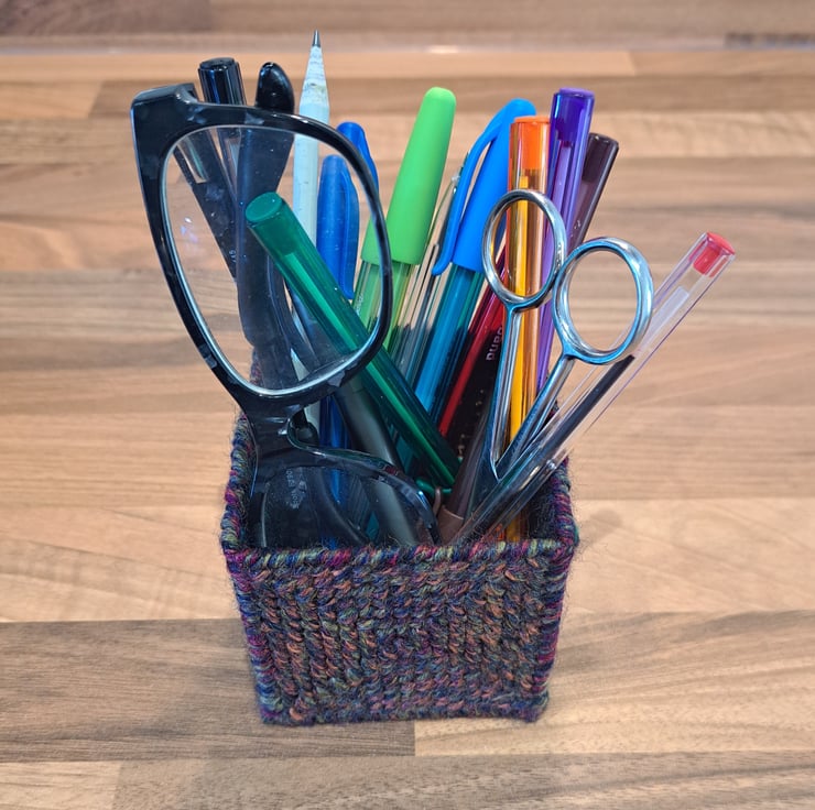 Container to keep your desk's bits 'n' bobs in one place. Use to store pens, glasses, USBs, erasers, rings, hair bobbles, and other small items.