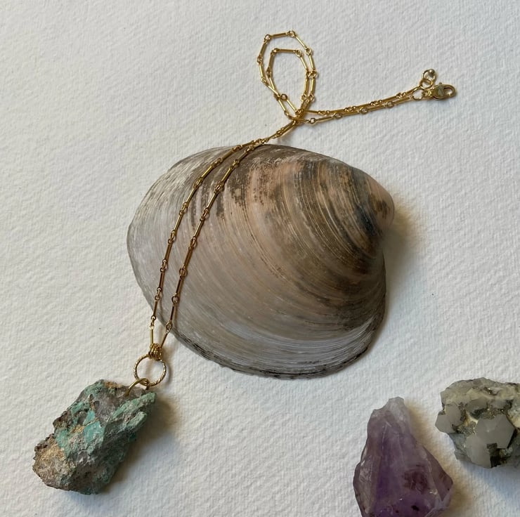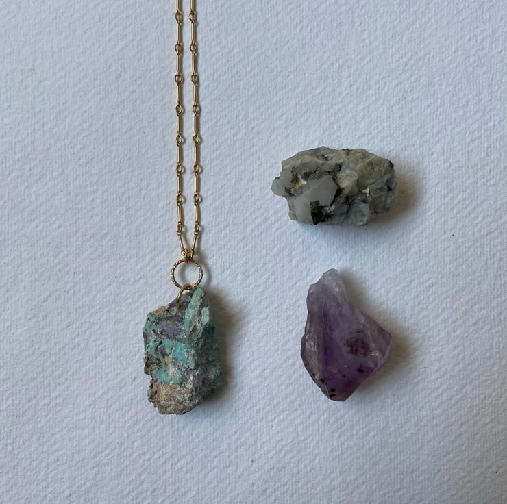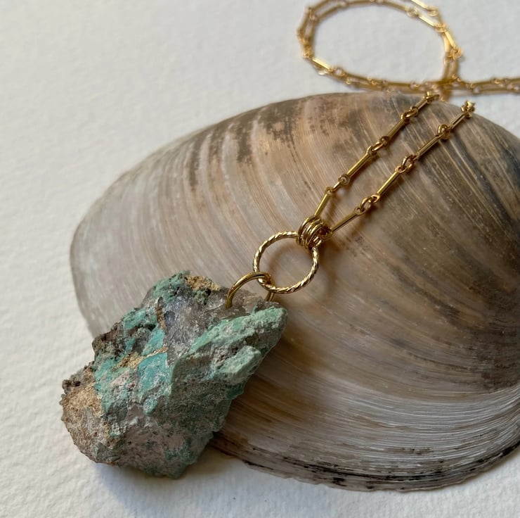 Cornish Turquoise is usually composed of feldspar, quartz and micas depending on where it forms and the different minerals oxidising, more copper will make it blue, more iron will make it more verdant. I love the dusty milky opaque blue hue of the Kernow variation. You can actually find it a stones throw from where I grew up, outside St Austell, Cornwall, where kaolinite (China Clay) is still mined. Turquoise was a happy accident when mining for kaolinite, so although its discovery was a by product of the huge China Clay Industry, it obviously unearthed some treasure.