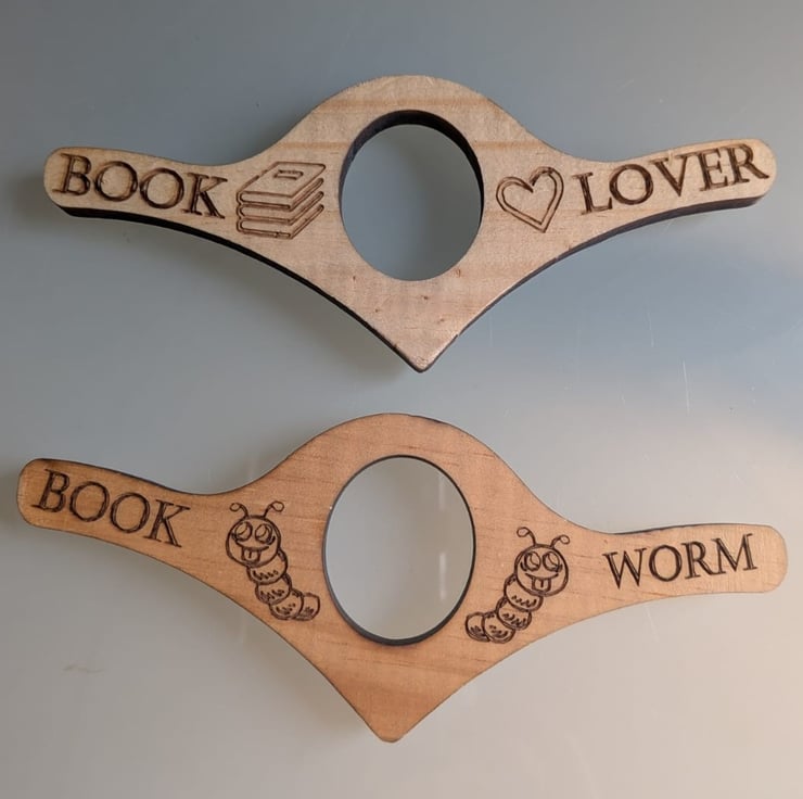 Comfortably read your favourite books with one hand using the thumb page holder! Made from smooth, engraved wood, it's the perfect accessory for any avid reader. Reduces hand strain and keeps pages open effortlessly.
