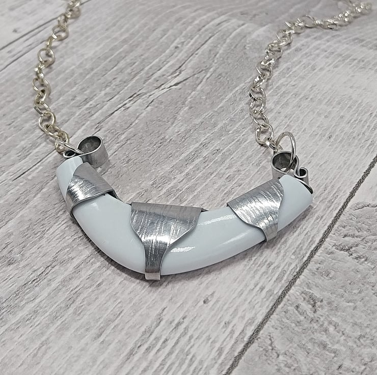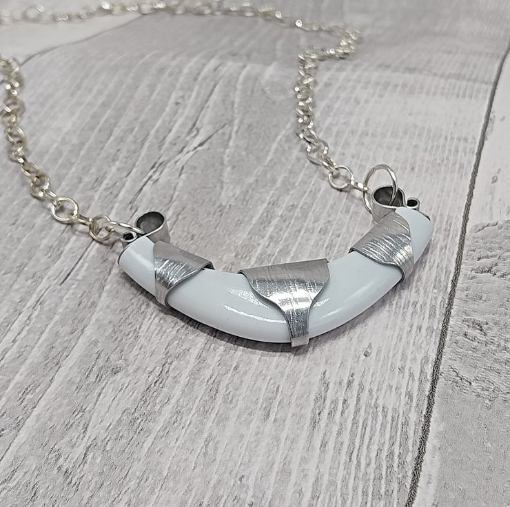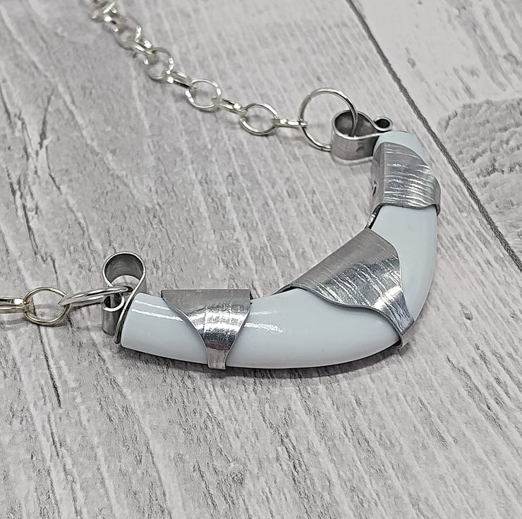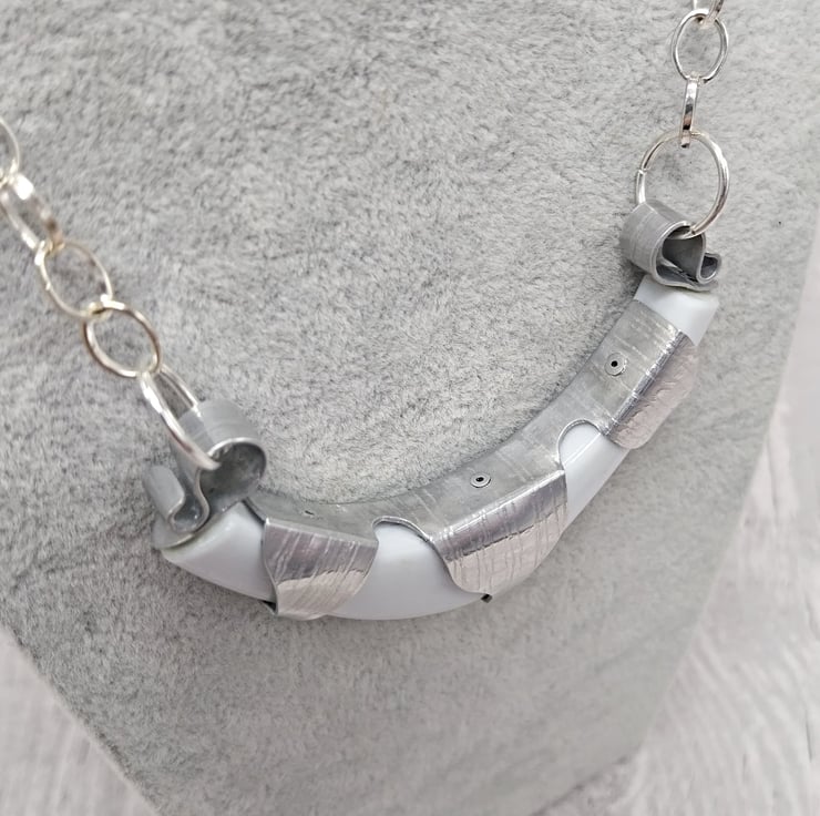 Aluminium and Pre-loved Jewellery Necklace, Upcycled Bangles Silver & White