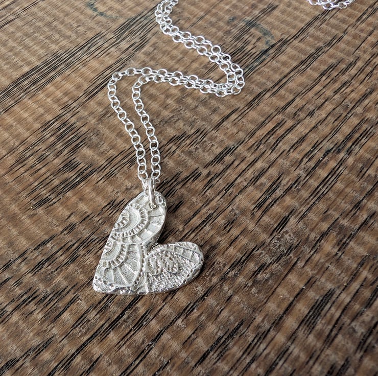 This quirky heart pendant is textured with my Heritage Lace Design. The perfect gift for a textile enthusiast or an imaginative way to fulfil the 13th Wedding Anniversary gifting tradition.