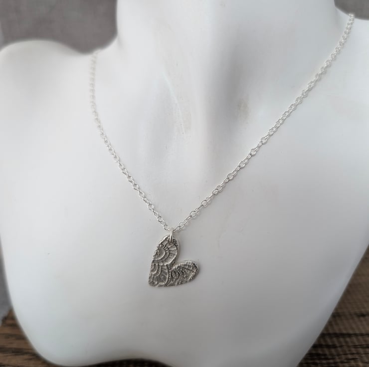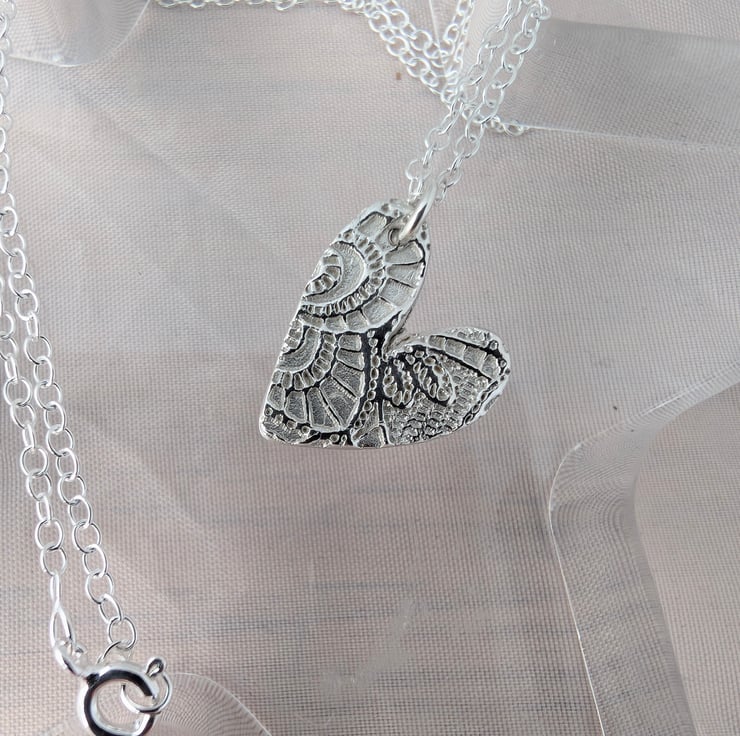 Handmade Fine Silver Heart Shaped Pendant Necklace - Heritage Lace Design