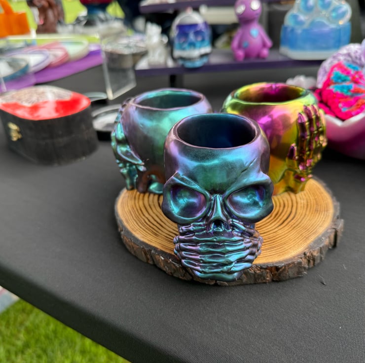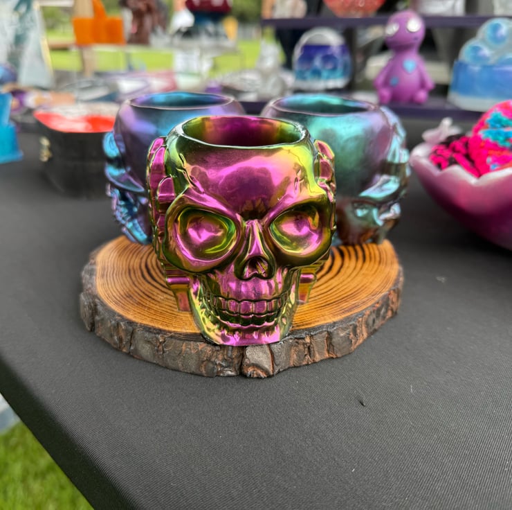 Perfect use for anything in your home or office. All homemade with resin and placed on a wooden base. These are a perfect gift for anyone who loves the alternative or gothic style and will make any area stand out!! Can be made in any other colours to make them personal.