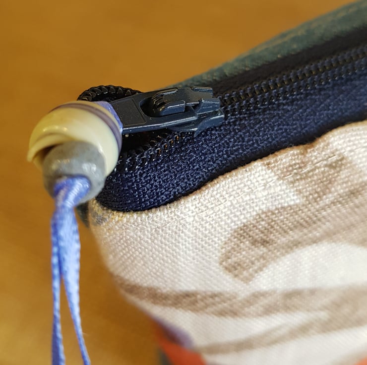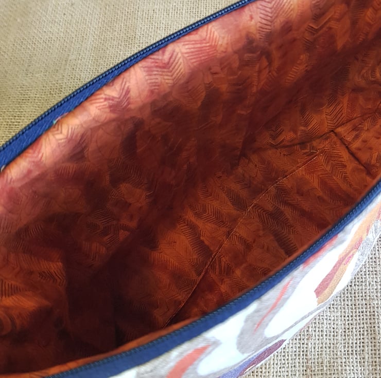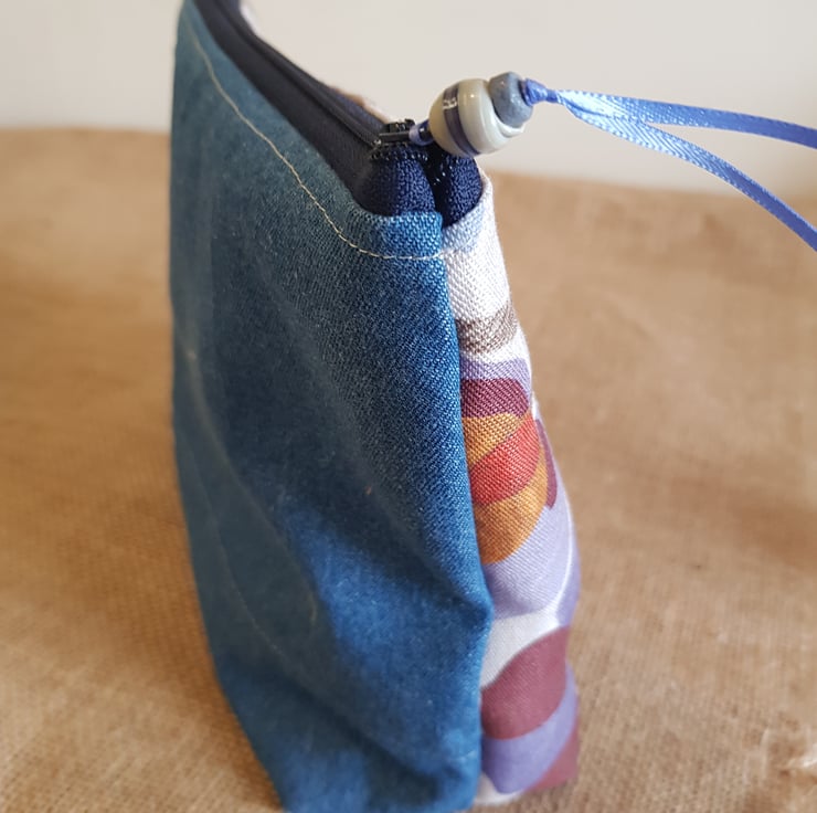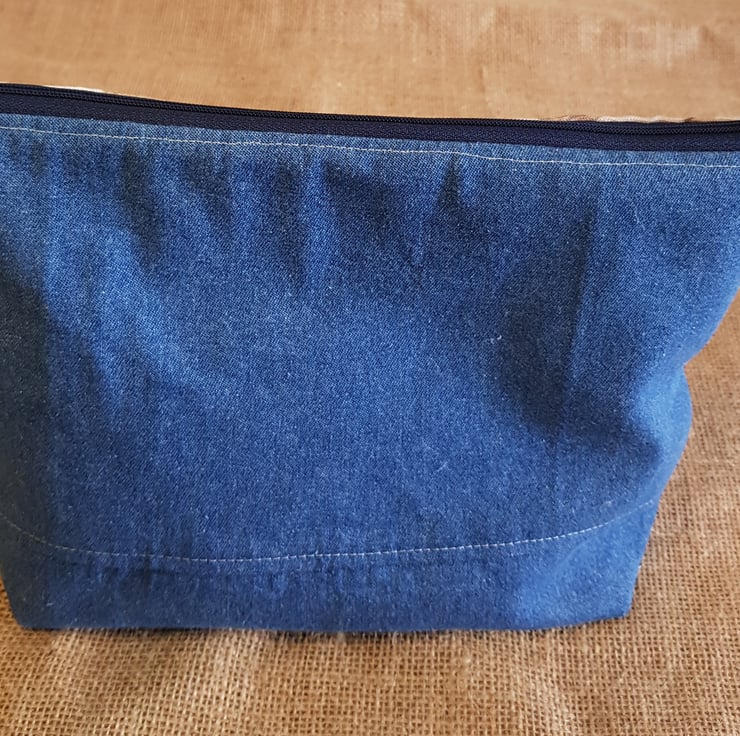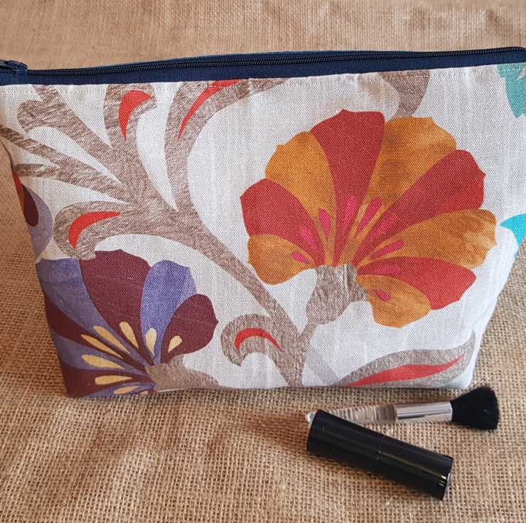 This larger pouch/ makeup bag is made from remnants of curtain fabric. It would be ideal to pop in a small gift. It is large enough for a paperback book too.