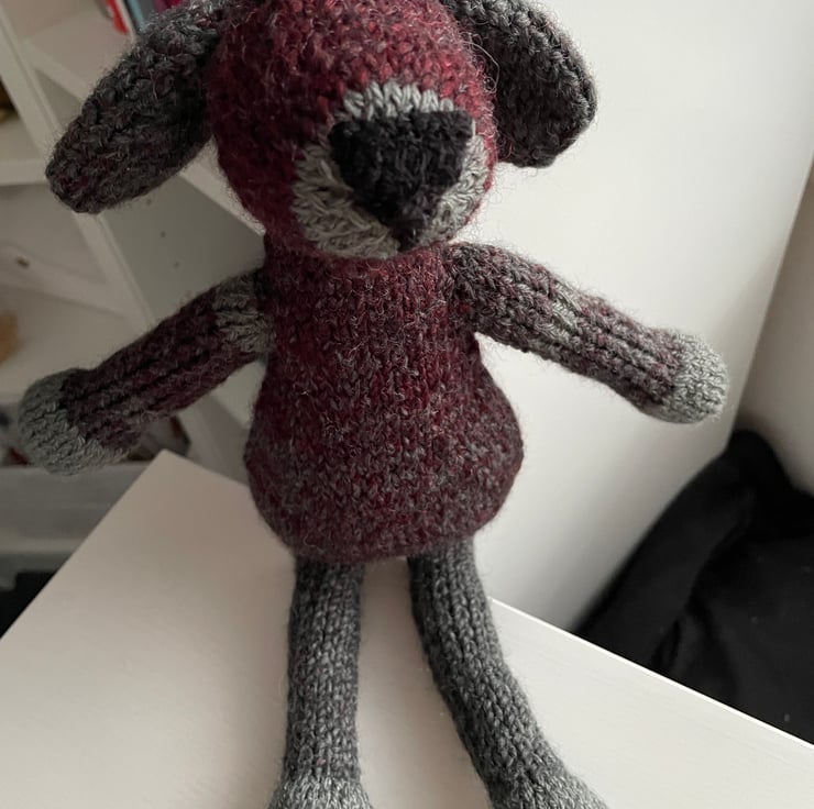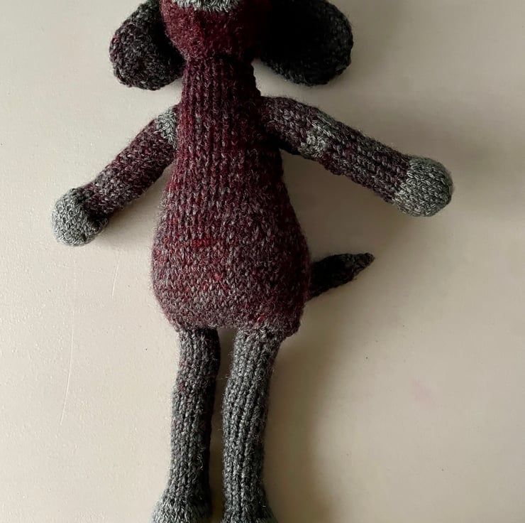 Soft Bodied Hand Knitted Grey and Burgundy Dog