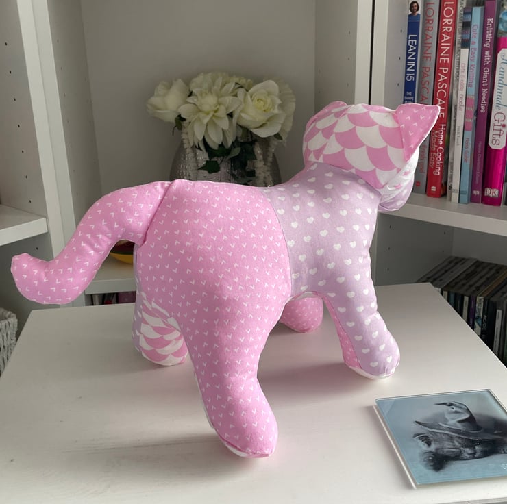 Handmade Patchwork Cat made from a Funky Friends Factory pattern. I