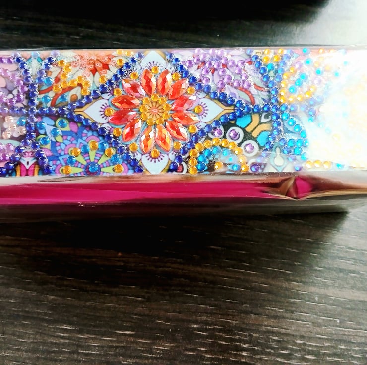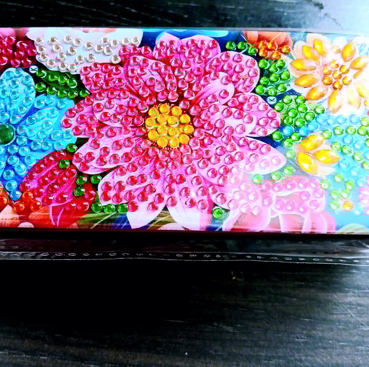 PU leather glasses case for storing everyday glasses or sunglasses. Handmade with love, featuring resin diamonds on the lid of the case. A definite conversation starter and a wonderful item to keep your glasses i until you are ready to use them.