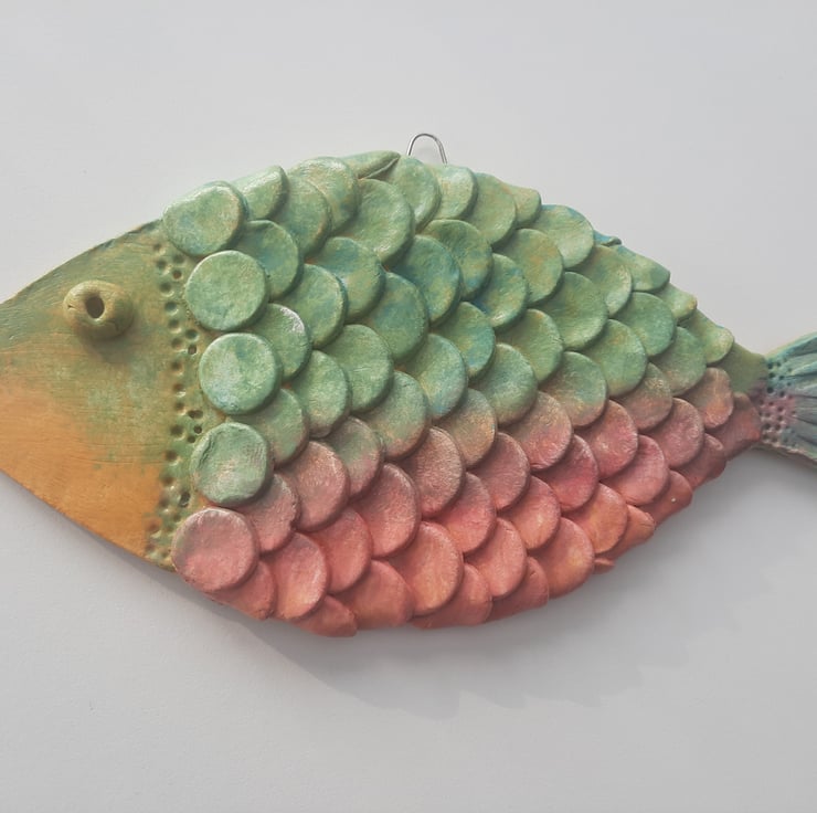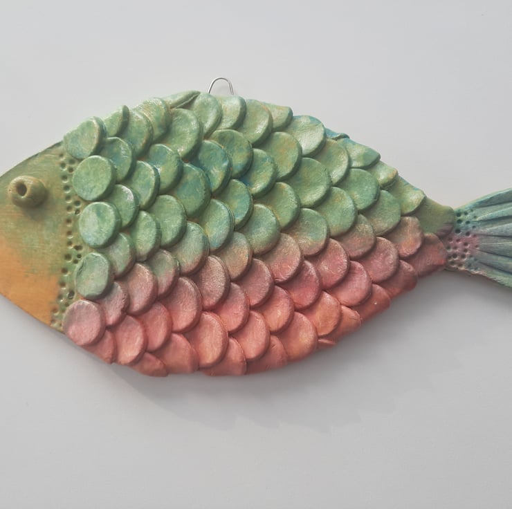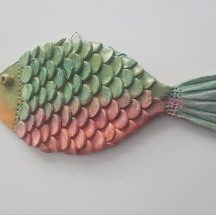 Fish Wall Art Made of Air Dry Clay and Hand Painted