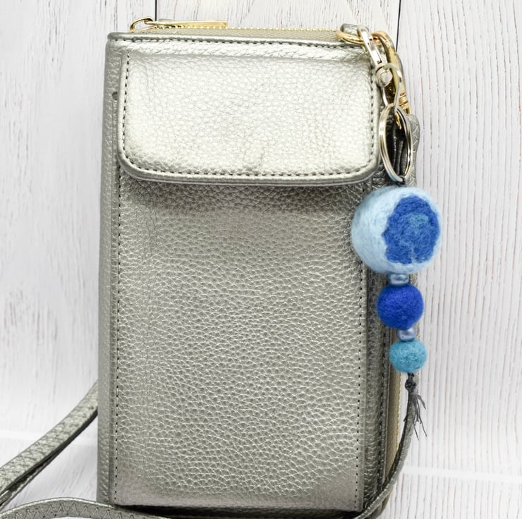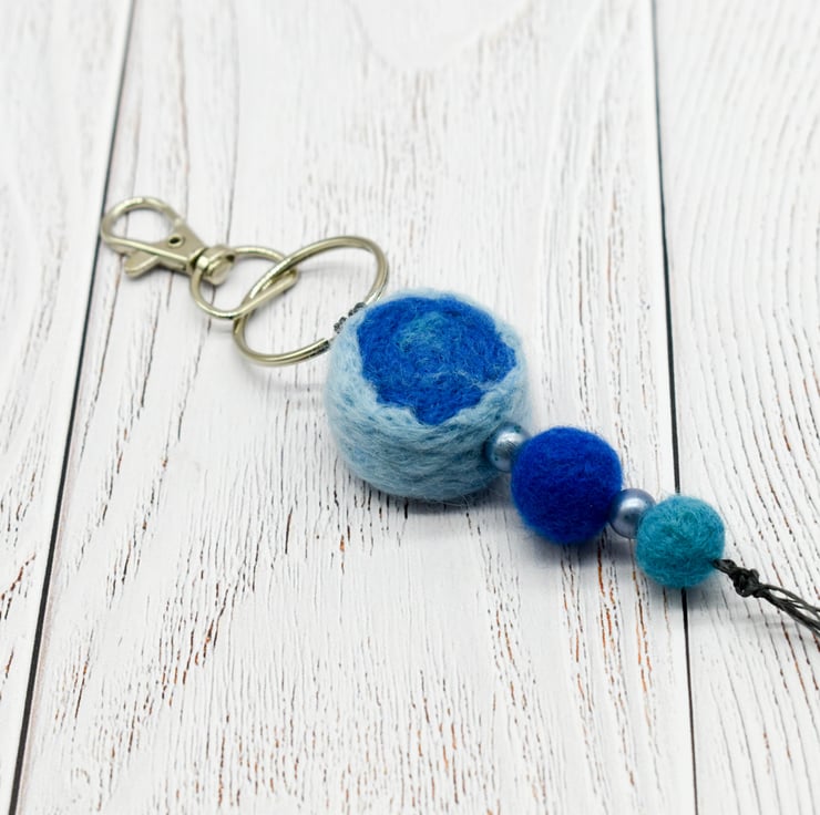 Felted bead Bag Charm - Key Ring Blues