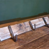 3 hook key rack. Made from reclaimed wood & tiles. Attachments on the back for wall hanging. Will hold 3 sets of keys. Tiles are dark grey and terracotta colours.
