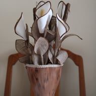 Natural driftwood table lamp with dried flower holder - a unique floor lamp that combines rustic design with soft floral charm. The open wooden cavity serves as a built-in lampshade for a floor lamp look. Includes an E27 (standard size) socket, compatible with LED bulbs. Soft ambient lighting, ideal for cozy, nature-inspired spaces. A sculptural floral alternative to a lampshade with character and warmth.