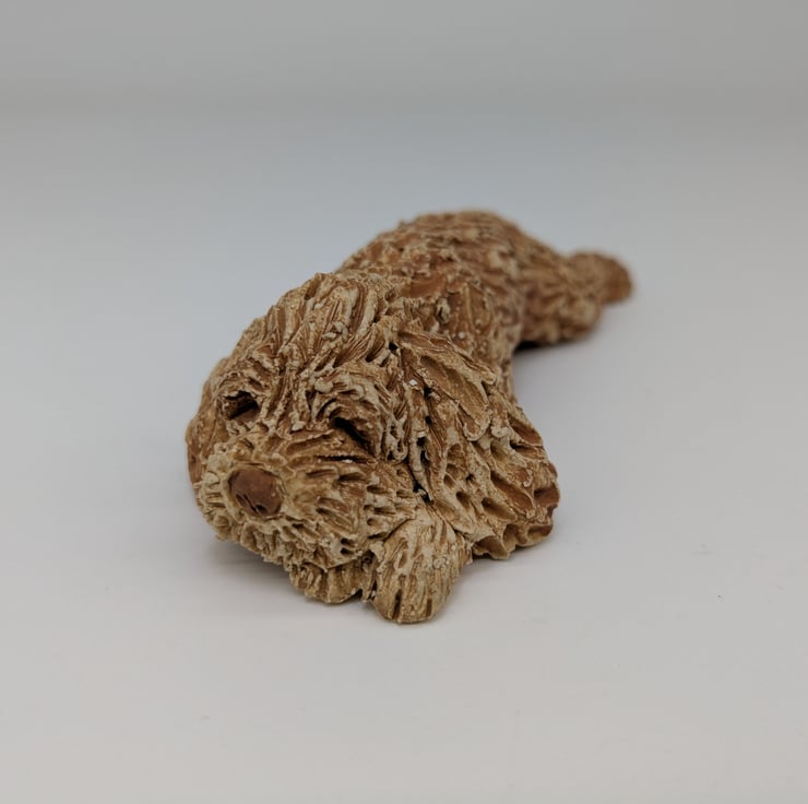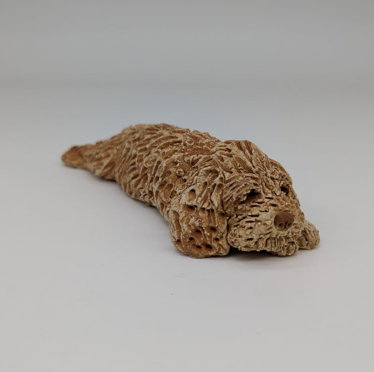 Cute little sleeping Cockerpoo handmade in stoneware clay.