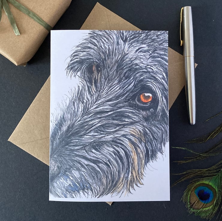 Wolfhound or Deerhound card from my ink and watercolour painting. This handmade blank card is printed on matt white card. Great for any Irish Wolfhound or Scottish Deerhound dog lover. Suitable for any occasion such as Birthday, Mother’s Day, Father’s Day, Wedding anniversary perhaps.