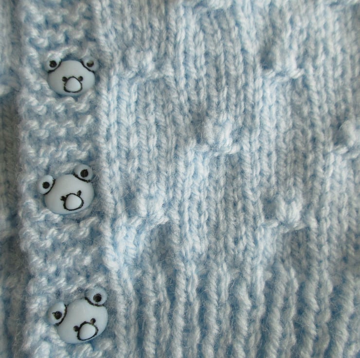 Fastening with 4 Blue Teddy Head Buttons (Boys way)