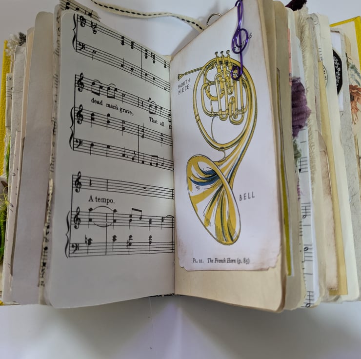 This cute little hardback book was once a book about music ..no room to add your thoughts or creativity ..but now it's transformed into a book you can keep your special moments ,ideas and more .you will find some of the original pages throughout .makes a lovely unique gift ..one of a kind !
