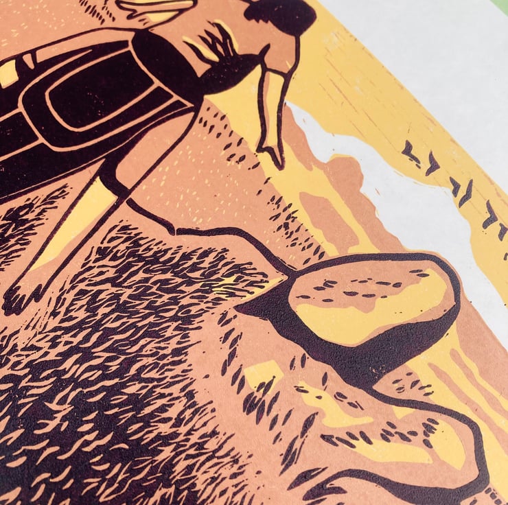 This print has been hand printed in my home studio using traditional lino printing techniques, and is a limited edition of 13, numbered and signed.