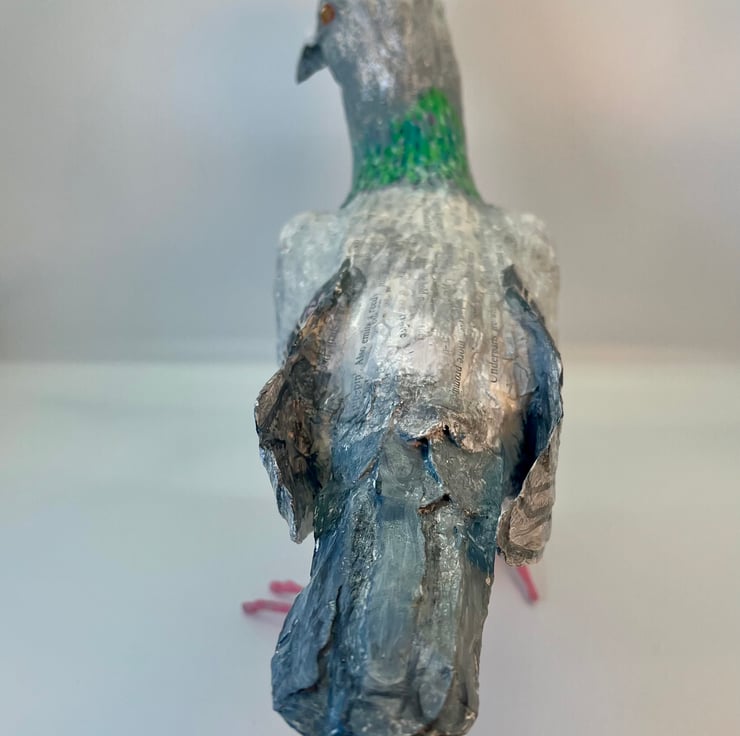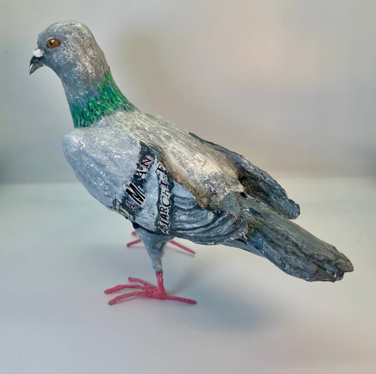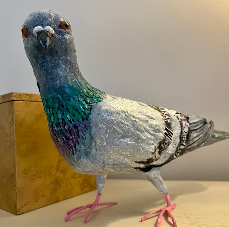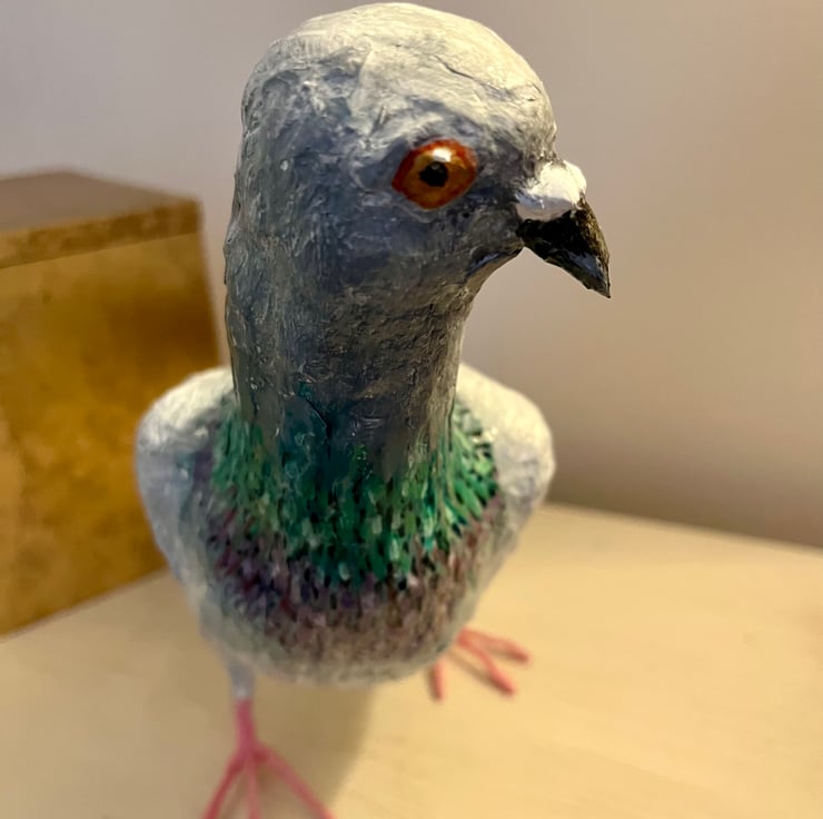 Papier maché ‘punk’ pigeon, bird sculpture original art work