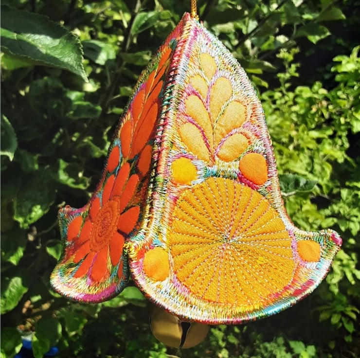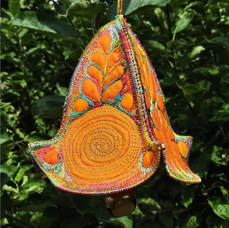 This is a handmade machine stitched textile Christmas bauble decoration