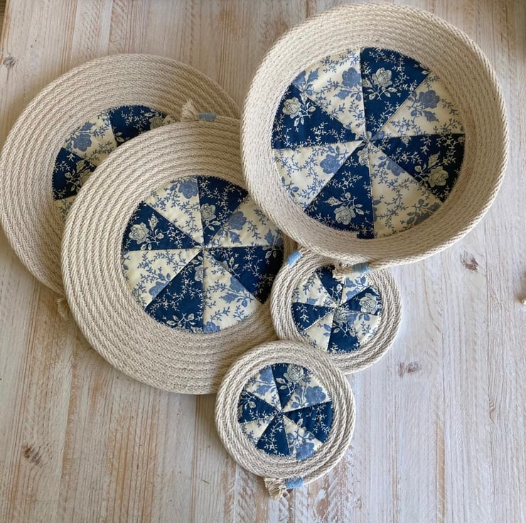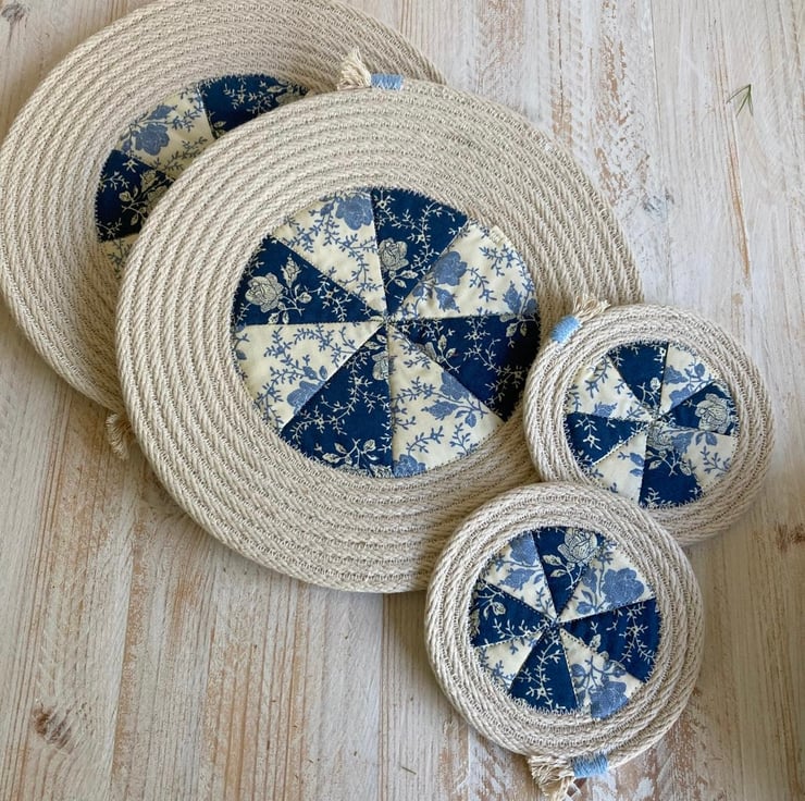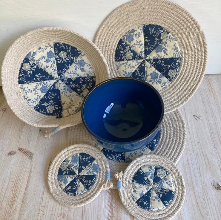 This stunning set of two, unique, hand crafted, coiled rope place settings will add a touch of elegance and rustic charm to your dining table. A perfect gift and home accessory, made from 100% cotton rope and printed fabric. Can be sold as a set or individually (please see individual listings).