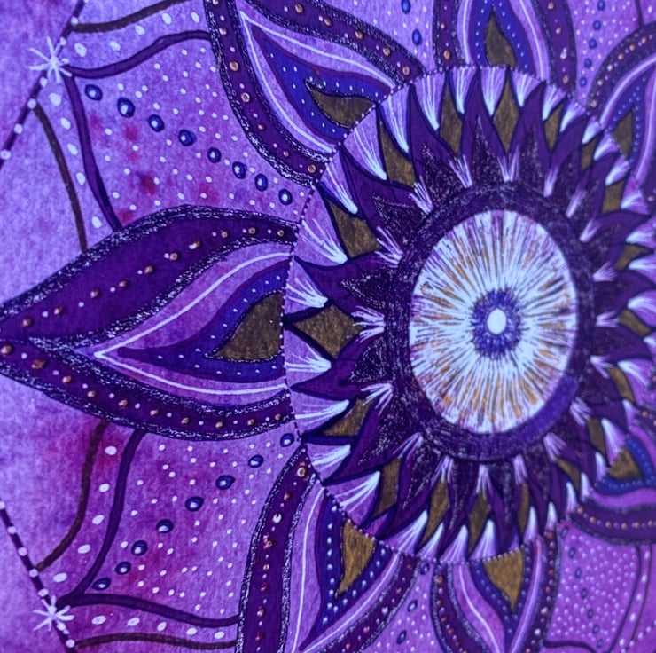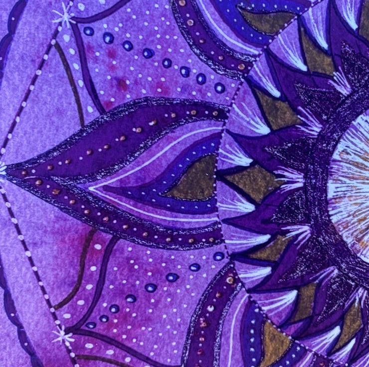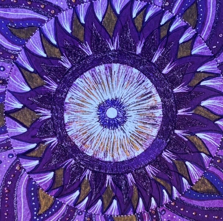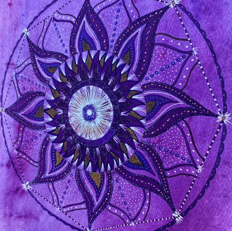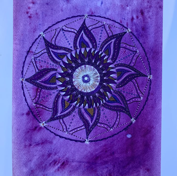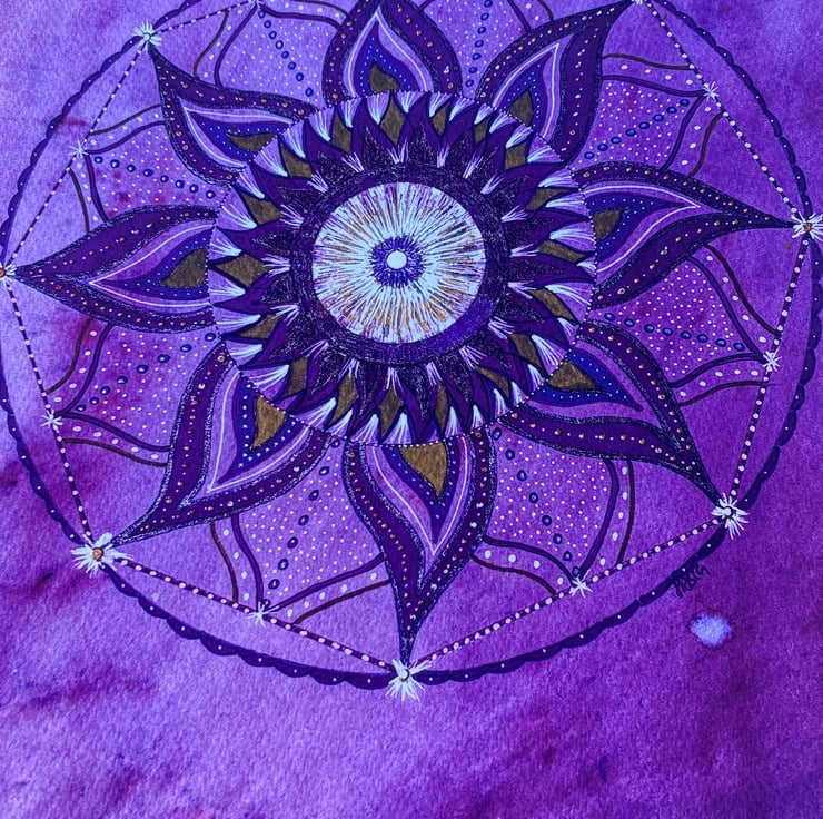 Mandalas are created with the intention of transmutation of negative energy into positive energy cleansing and clearing which does not serve you, this one is titled: Violet Flame Mandala.