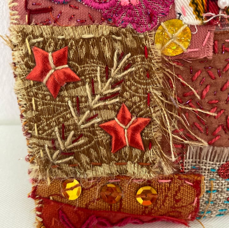 Hand stitched with added sparkly embellishments. Button fasten measures approx 6 x 4 inches
