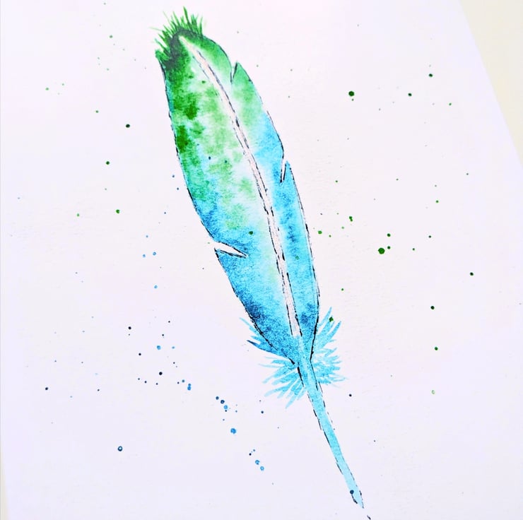 It's an original watercolour paining of a blue, green and turquoise feather. I painted this feather back in 2023 with watercolour paints on high quality paper.