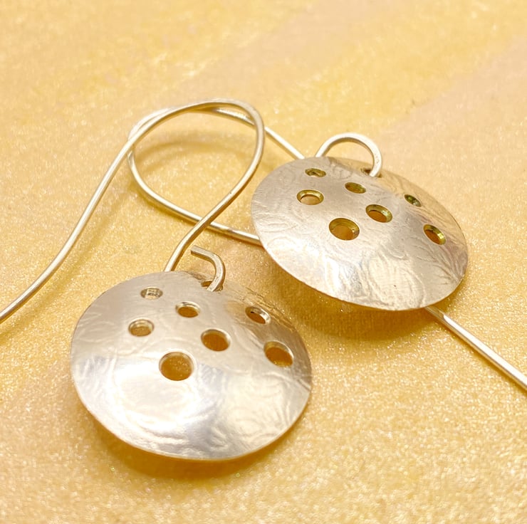 Textured silver disc earrings crafted from sterling silver. Featuring a softly textured leaf surface that catch the light with subtle shimmer, these earrings offer a modern yet organic feel. Lightweight and comfortable, they add understated elegance to both everyday and special occasion looks.