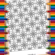 A digital, printable PDF of a mandala pattern, on one page as the single mandala, and on another page tiled to fill the page, in high resolution for colouring.