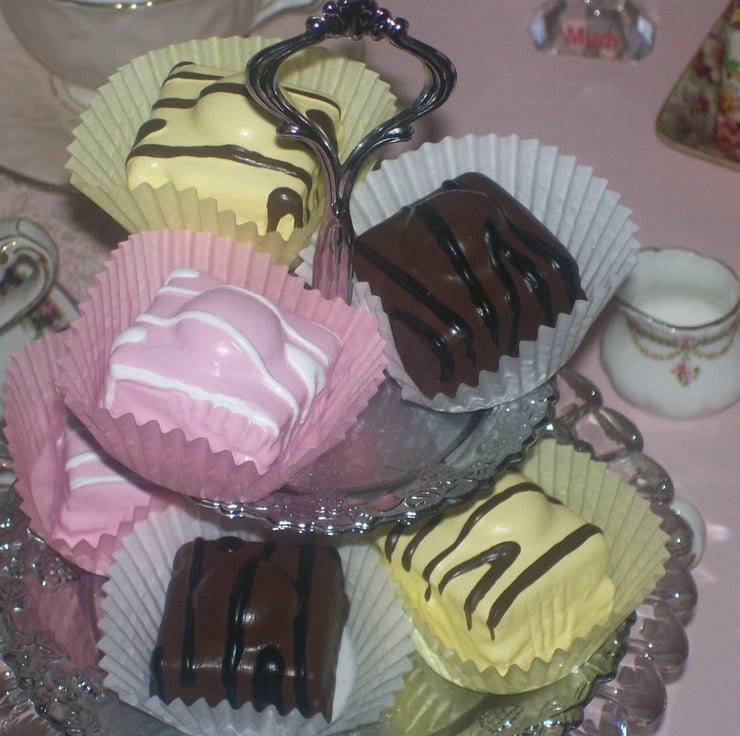 Sweet Set of 6 Fake French Fondant Fancies Fake Cakes China Cake Stand Shop Disp